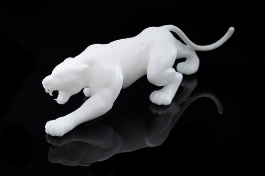 Ghost of the Mountains - Sculpture en plexiglass blanc – Panthère des neiges