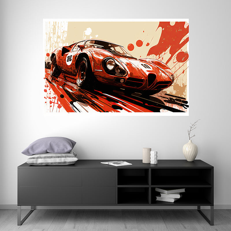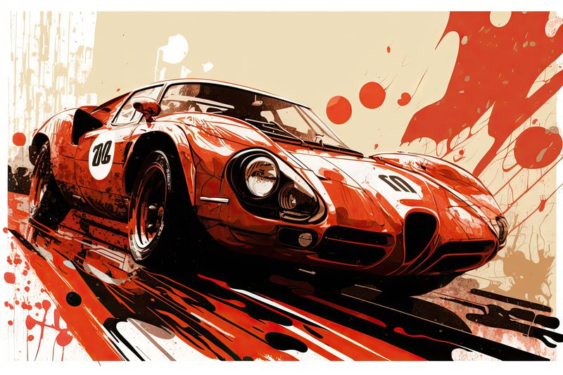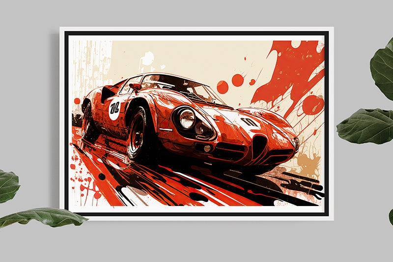 Don't miss this opportunity to own a unique and stunning illustration of the Alfa Romeo 33 Stradale in splash painting. You won't be disappointed with this fusion of artistry and automotive excellence, celebrating the timeless beauty of one of the most iconic cars in automotive history.