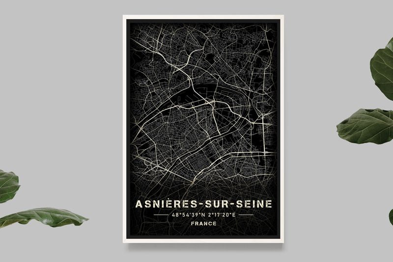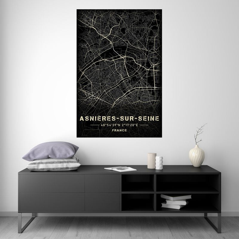 Asnières-sur-Seine - Black and White Map
