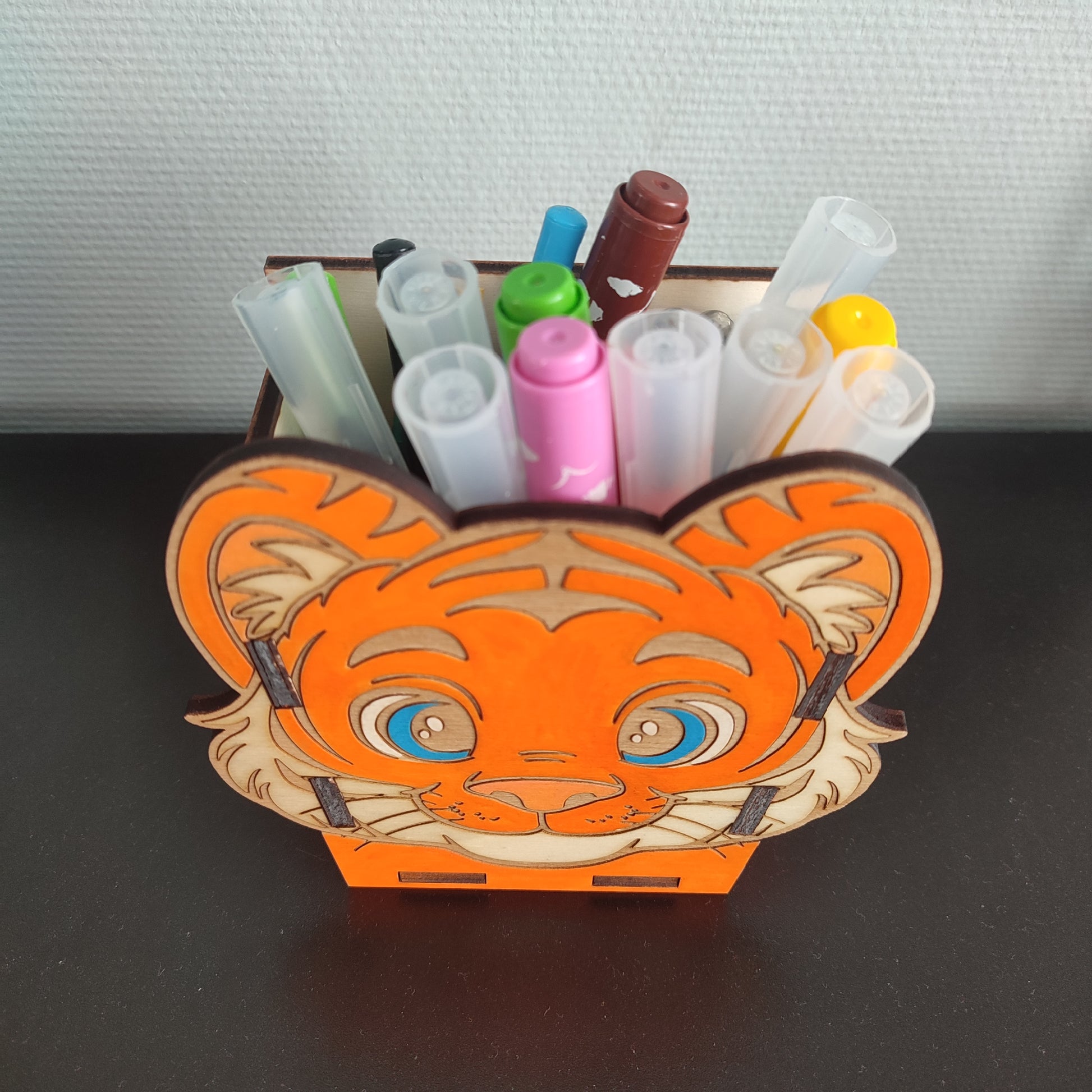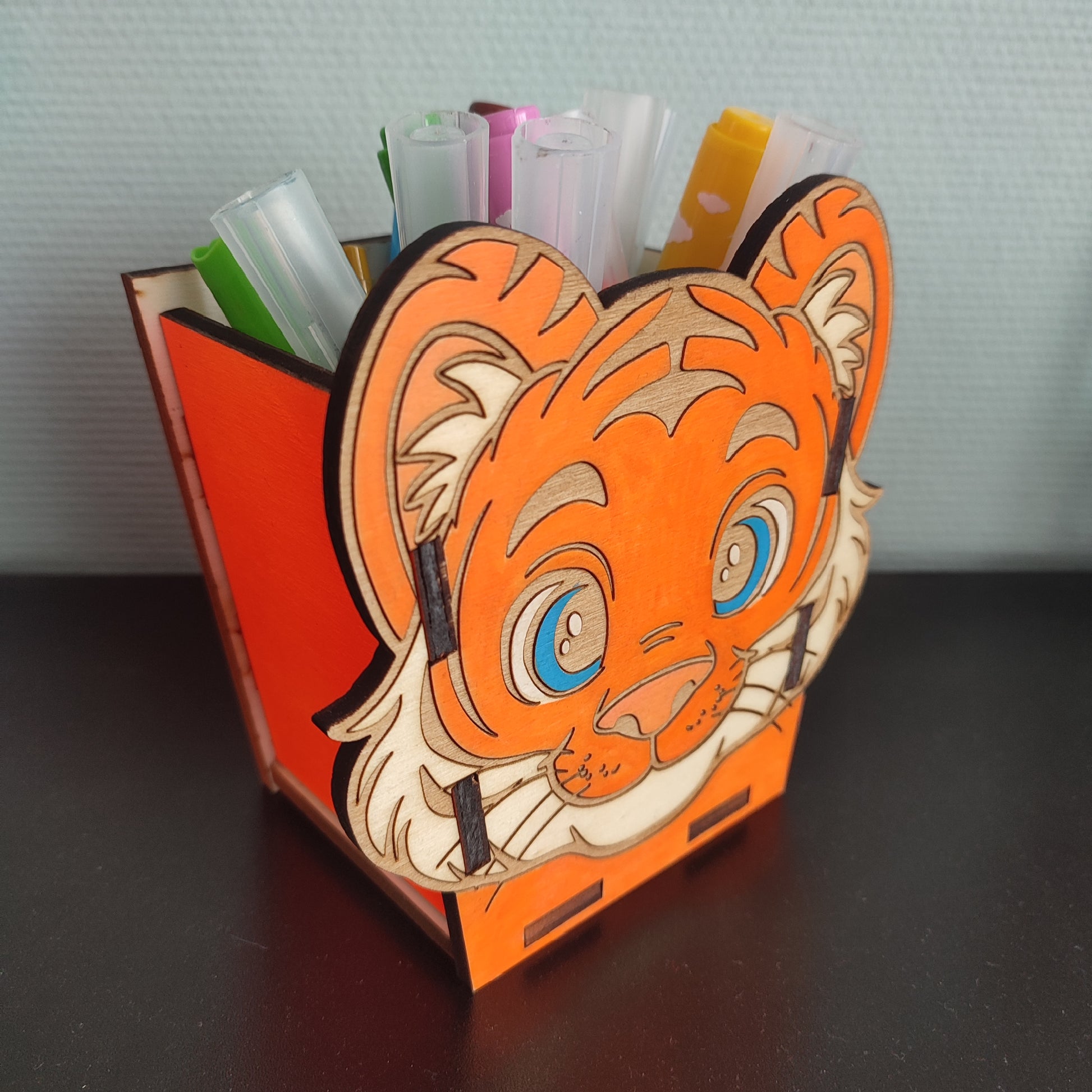 Downloadable pencil box, tiger model, includes all the parts needed to build the box and engraving/cutting instructions. As the model is simple, there are no assembly instructions, you can use the photos to help yourself.