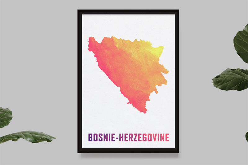 This map of Bosnia and Herzegovina in watercolor style is a unique work of art that showcases the natural beauty of this Eastern European country. Printed on premium paper, it presents the contours of the country with remarkable finesse and precision.