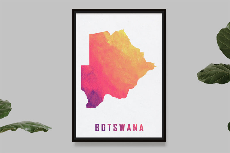 This watercolor style map of Botswana is a unique work of art that showcases the natural beauty of this African country. Printed on premium paper, it presents the contours of the country with remarkable finesse and precision.