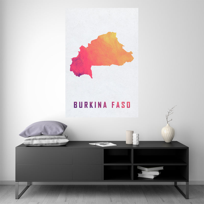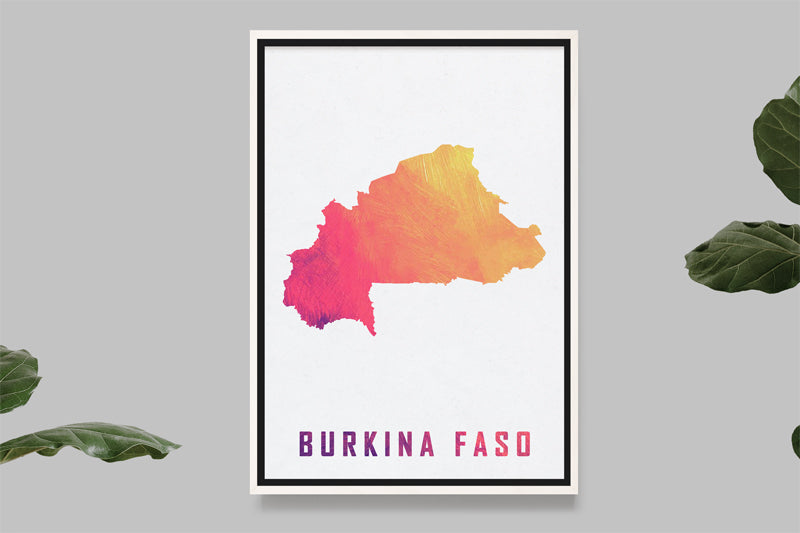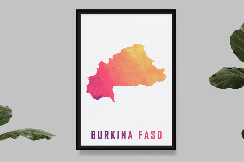This map of Burkina Faso in watercolor style is a unique work of art that showcases the natural beauty of this African country. Printed on premium paper, it presents the contours of the country with remarkable finesse and precision.