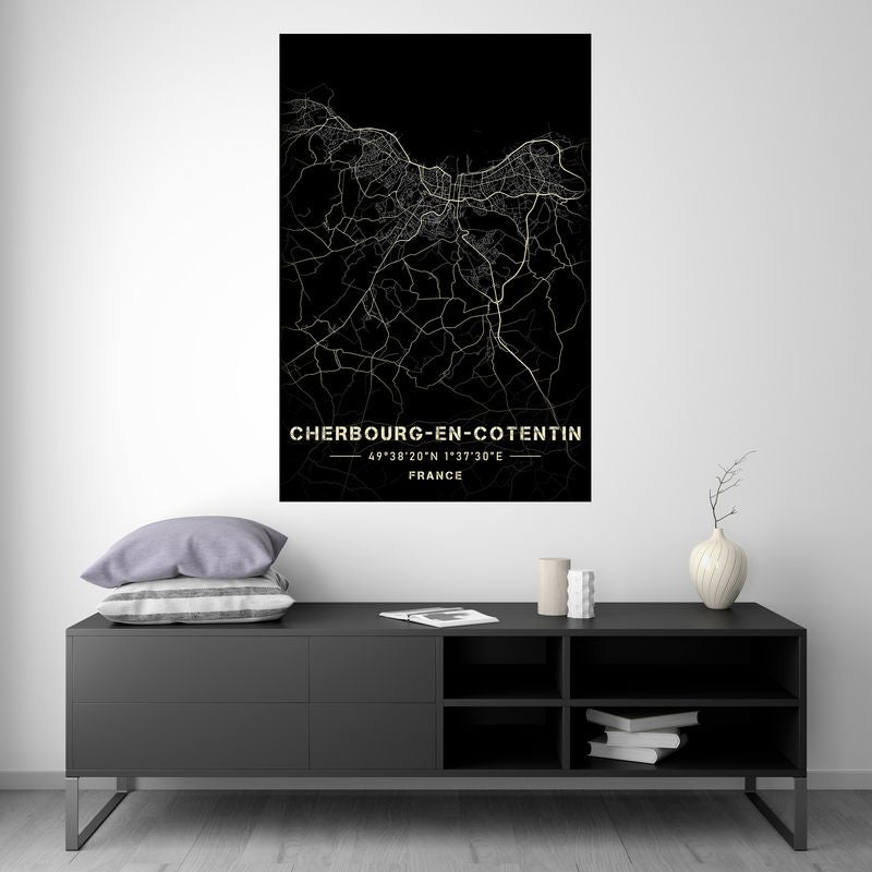 Cherbourg-en-Cotentin - Black and White Map