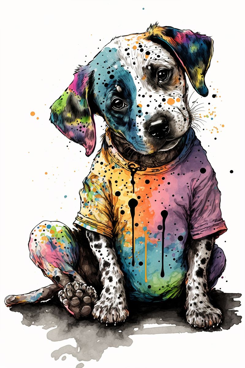This illustration of a cute dog in splash paint style is absolutely adorable! With his big, expressive brown eyes and soft, silky fur, you can't help but fall for this dog. The splash paint style adds a modern and vibrant touch to the artwork, making it perfect for decorating any room. Whether you're a dog lover or simply appreciate original artwork, this illustration will be a perfect addition to your collection. Don't miss the opportunity to treat yourself to this cute little dog!