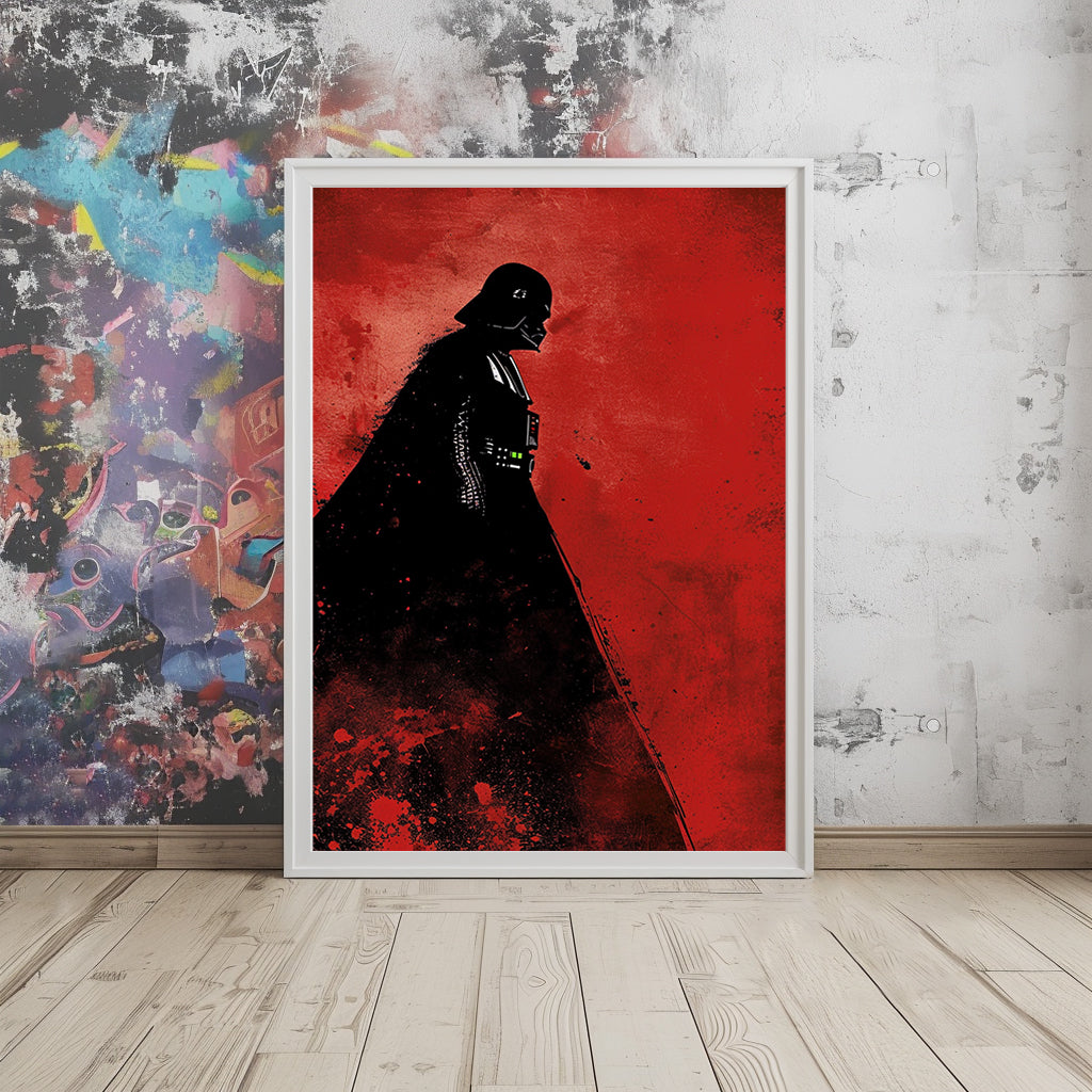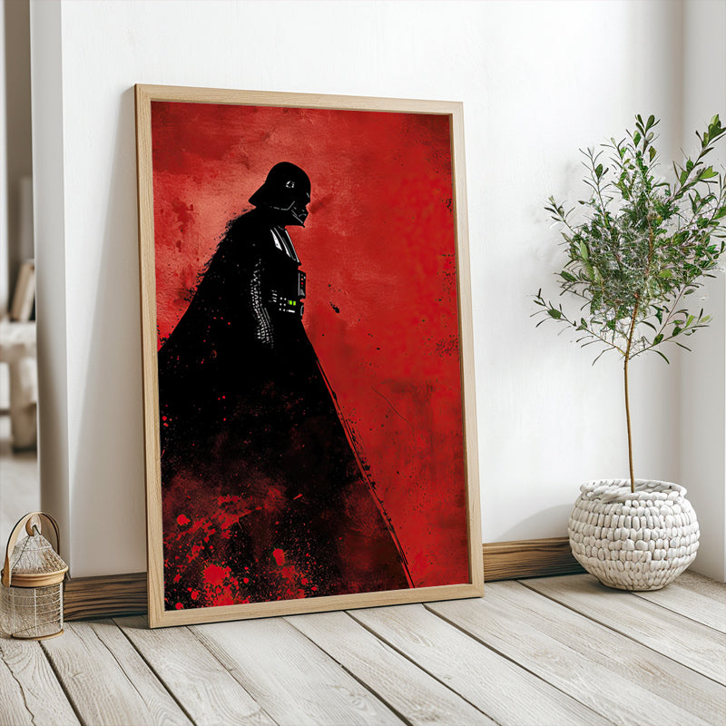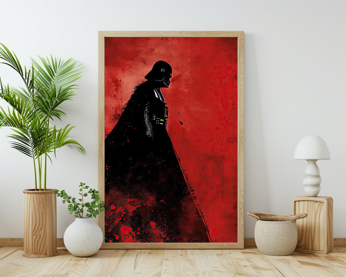Experience the elegance of the dark side with our minimalist wall poster featuring the iconic silhouette of Darth Vader from Star Wars, bathed in an intense red hue. This artistic piece captures the intrigue and power of the Sith Lord while adding a modern, stylized touch to your space.