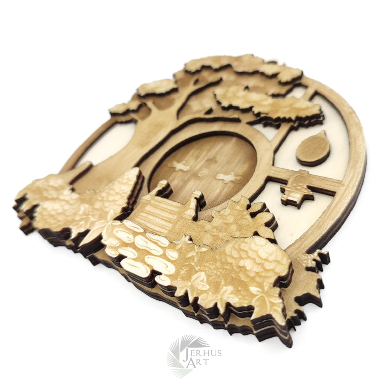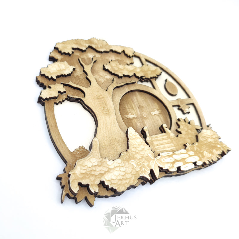 Hobbit House decoration to hang for download , includes all the parts needed to build the house and engraving/cutting instructions. As the model is simple and designed like a puzzle, there are no assembly instructions, you can use the photos to help yourself.