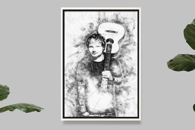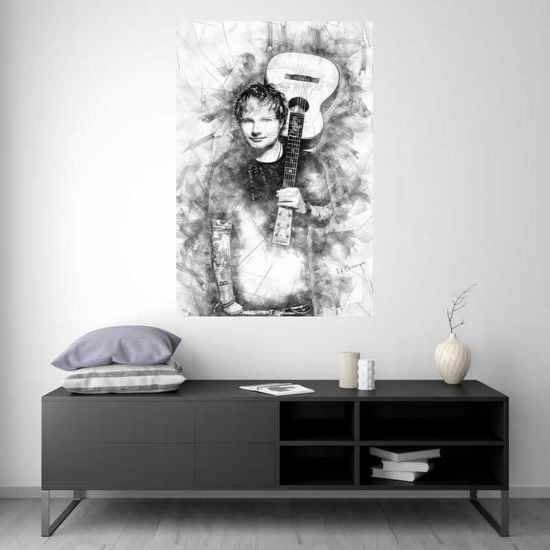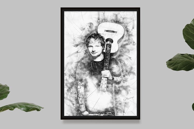Here is an incredibly detailed illustration of Ed Sheeran posing with his guitar. Her passion for music shines through in every feature of her concentrated face. His guitar, slung over his shoulder, is the instrument of his dreams and he uses it to create musical magic. This illustration is perfect for all fans of Ed Sheeran and music in general. Hang it on your wall to add a touch of flair and passion to your home decor.