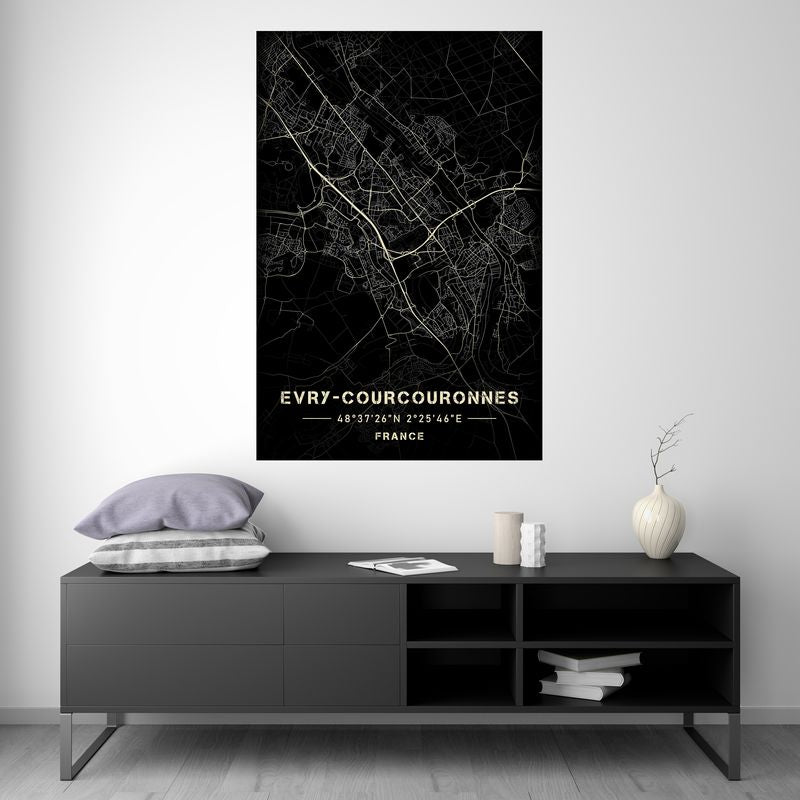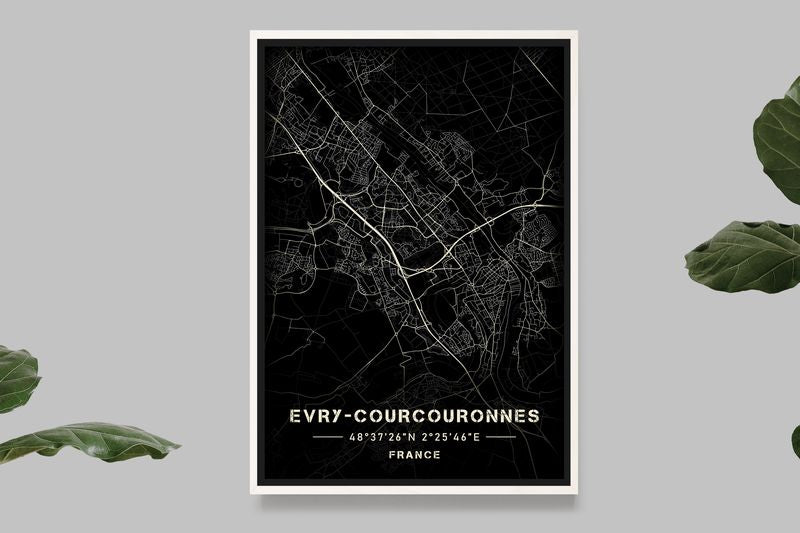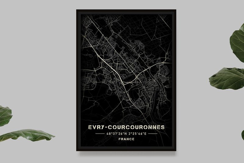 Evry-Courcouronnes - Black and White Map