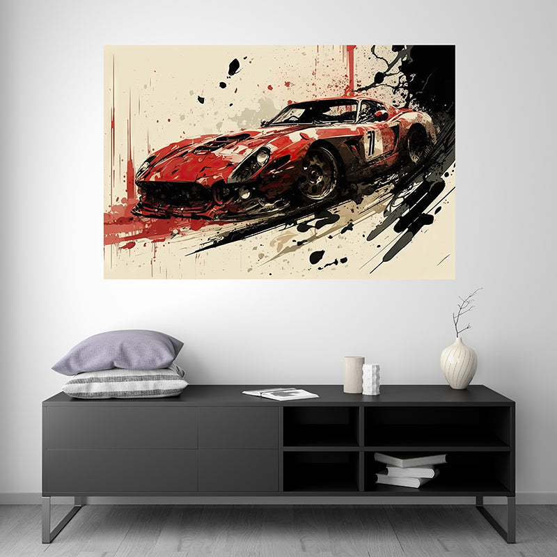 This illustration of the Ferrari GTO is a true masterpiece of automotive art, showcasing the iconic and legendary design of this legendary racing car through the splash painting technique.