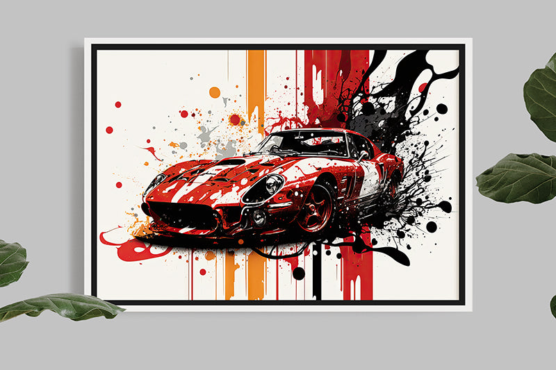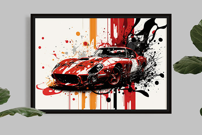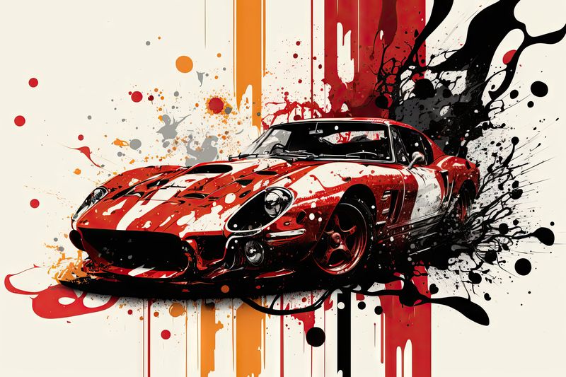 This illustration of the Ferrari GTO is a true masterpiece of automotive art, showcasing the iconic and legendary design of this legendary racing car through the splash painting technique.
