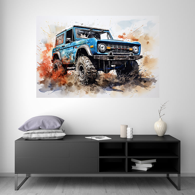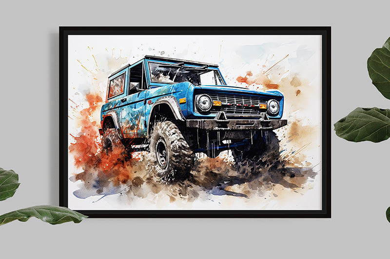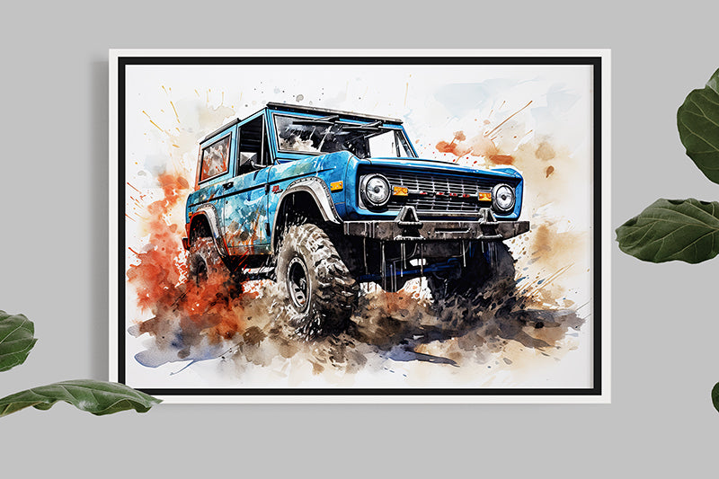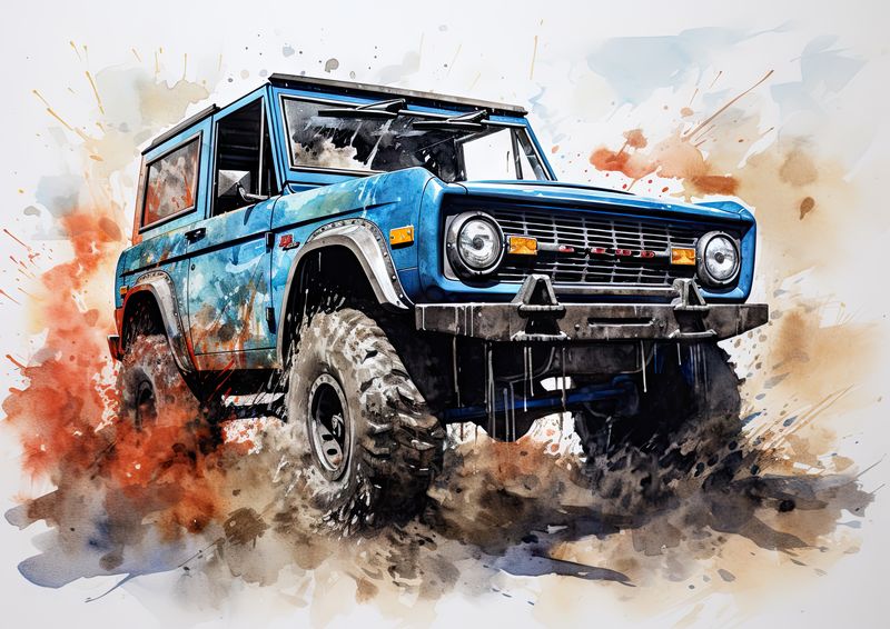 Take this opportunity to acquire a unique and captivating illustration of the Ford Bronco in splash painting. You will be overwhelmed by this union of artistic expression and automotive excellence, celebrating the timeless strength of one of the most iconic off-road vehicles of our time.
