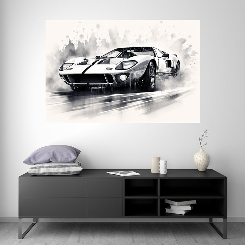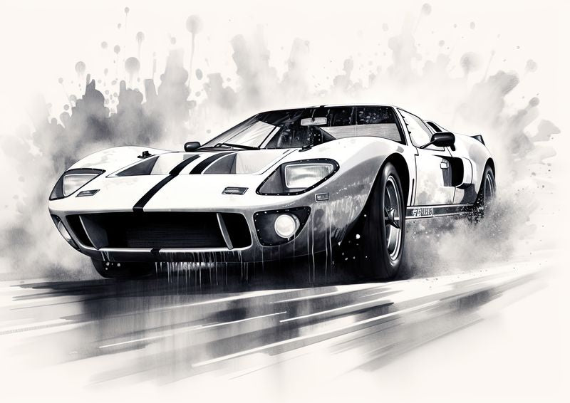 This work of art brings the Ford GT40 to the fore in an extraordinary way, perfectly capturing its legendary heritage and iconic design through the expert technique of splash painting.