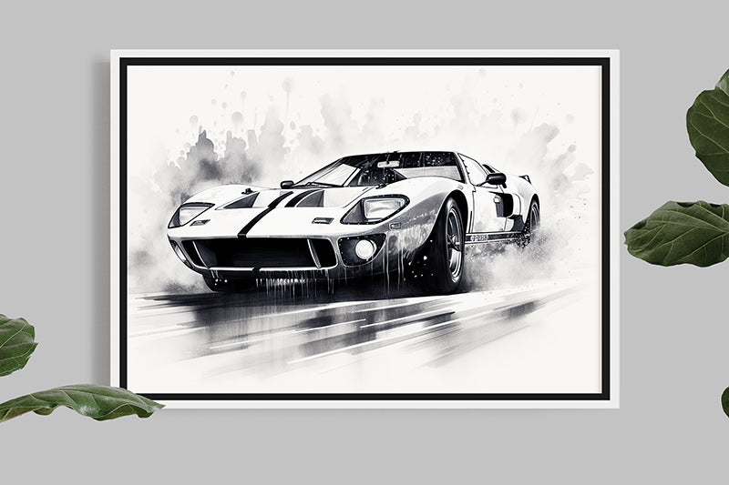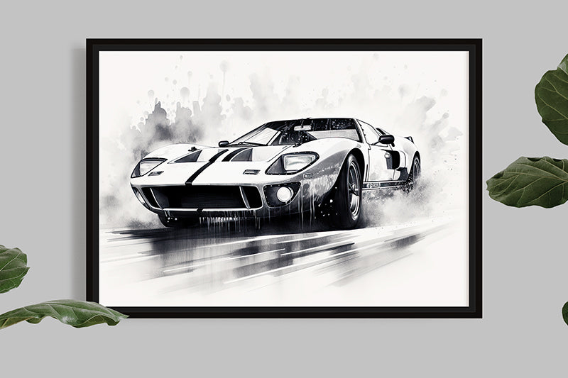 Don't pass up this unique opportunity to own a captivating Ford GT40 splash painting illustration. You will be truly impressed by this fusion of artistic creativity and automotive excellence, celebrating the timeless grandeur of one of the most legendary cars in automotive history.