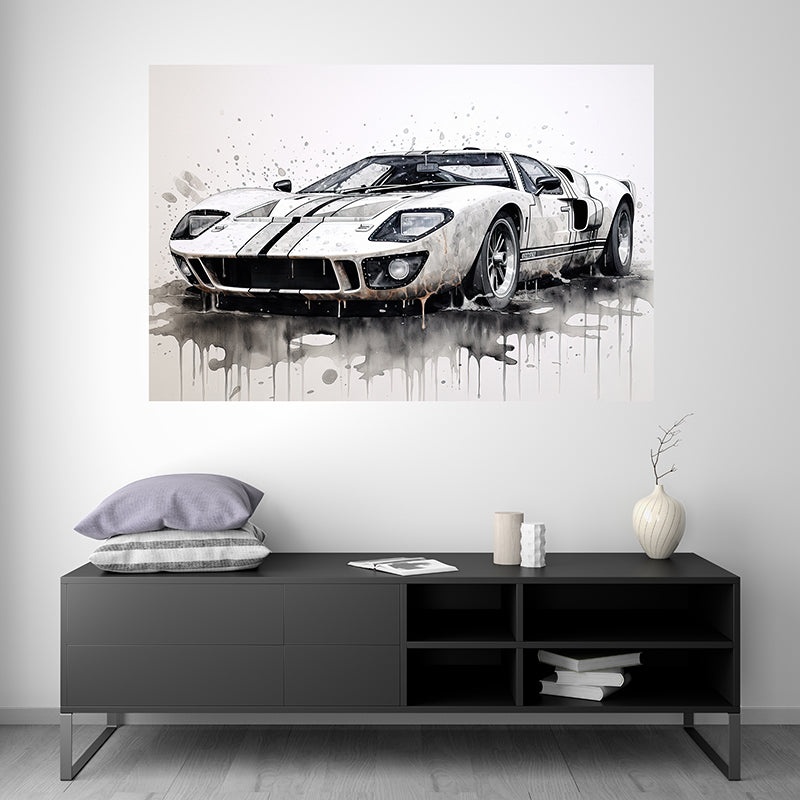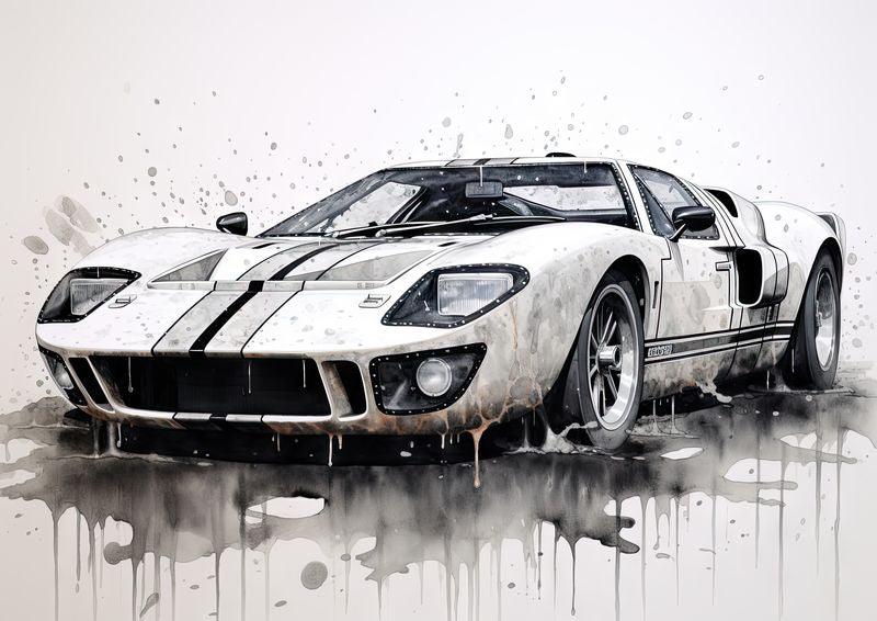 This work of art brings the Ford GT40 to the fore in an extraordinary way, perfectly capturing its legendary heritage and iconic design through the expert technique of splash painting.