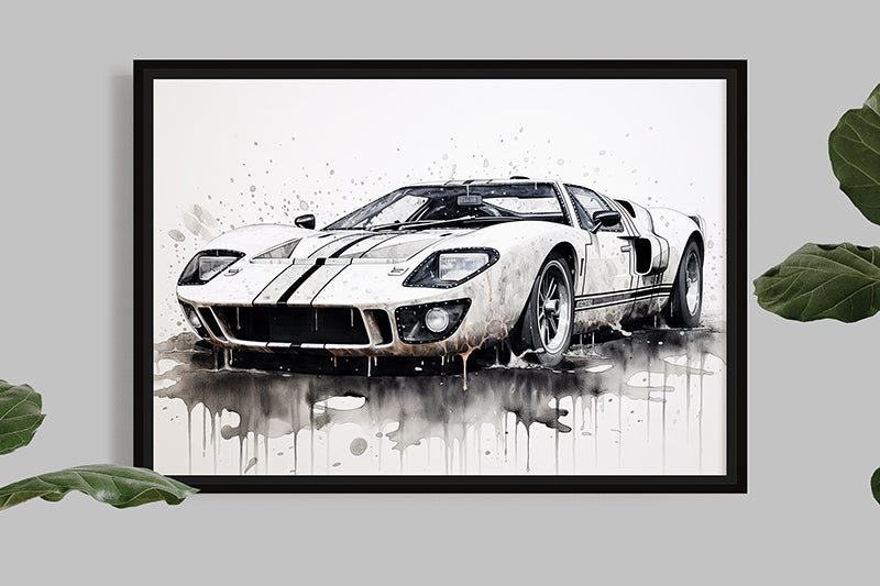 Don't pass up this unique opportunity to own a captivating Ford GT40 splash painting illustration. You will be truly impressed by this fusion of artistic creativity and automotive excellence, celebrating the timeless grandeur of one of the most legendary cars in automotive history.