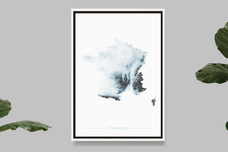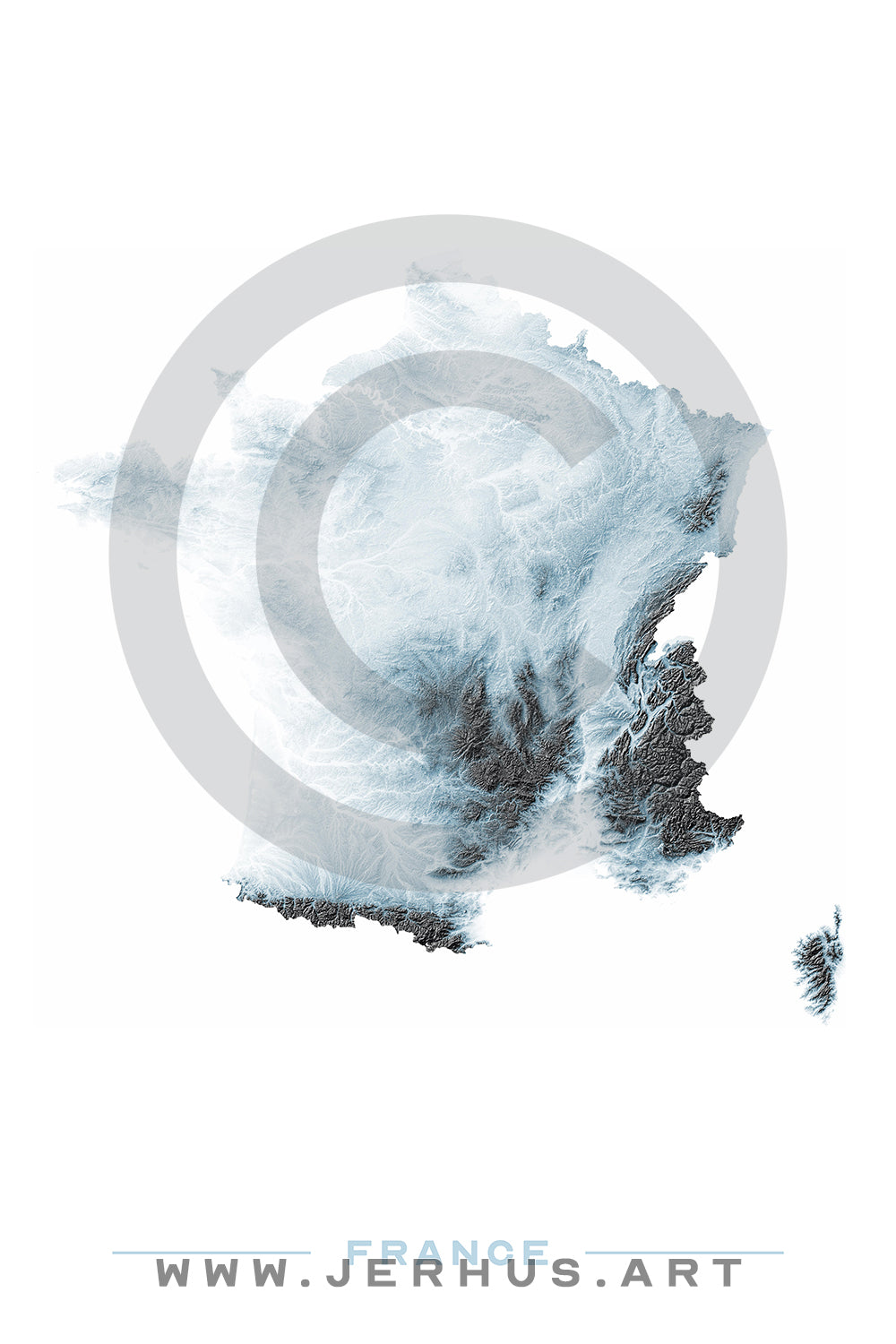 Here is a magnificent illustration of a map of France in blue relief effect. This map is perfect for anyone looking to decorate their work or living space with a unique and stylish decorative touch.