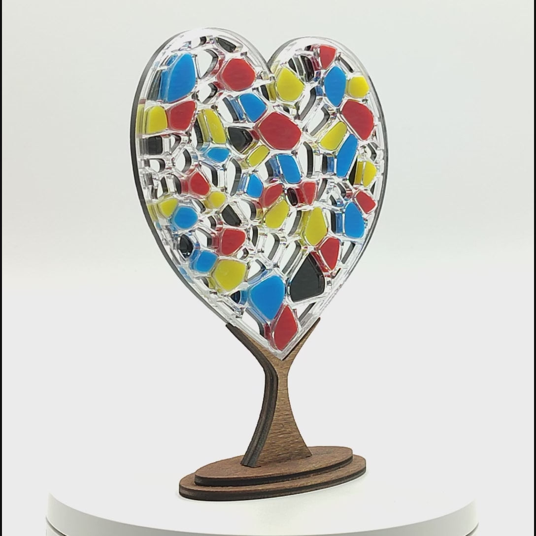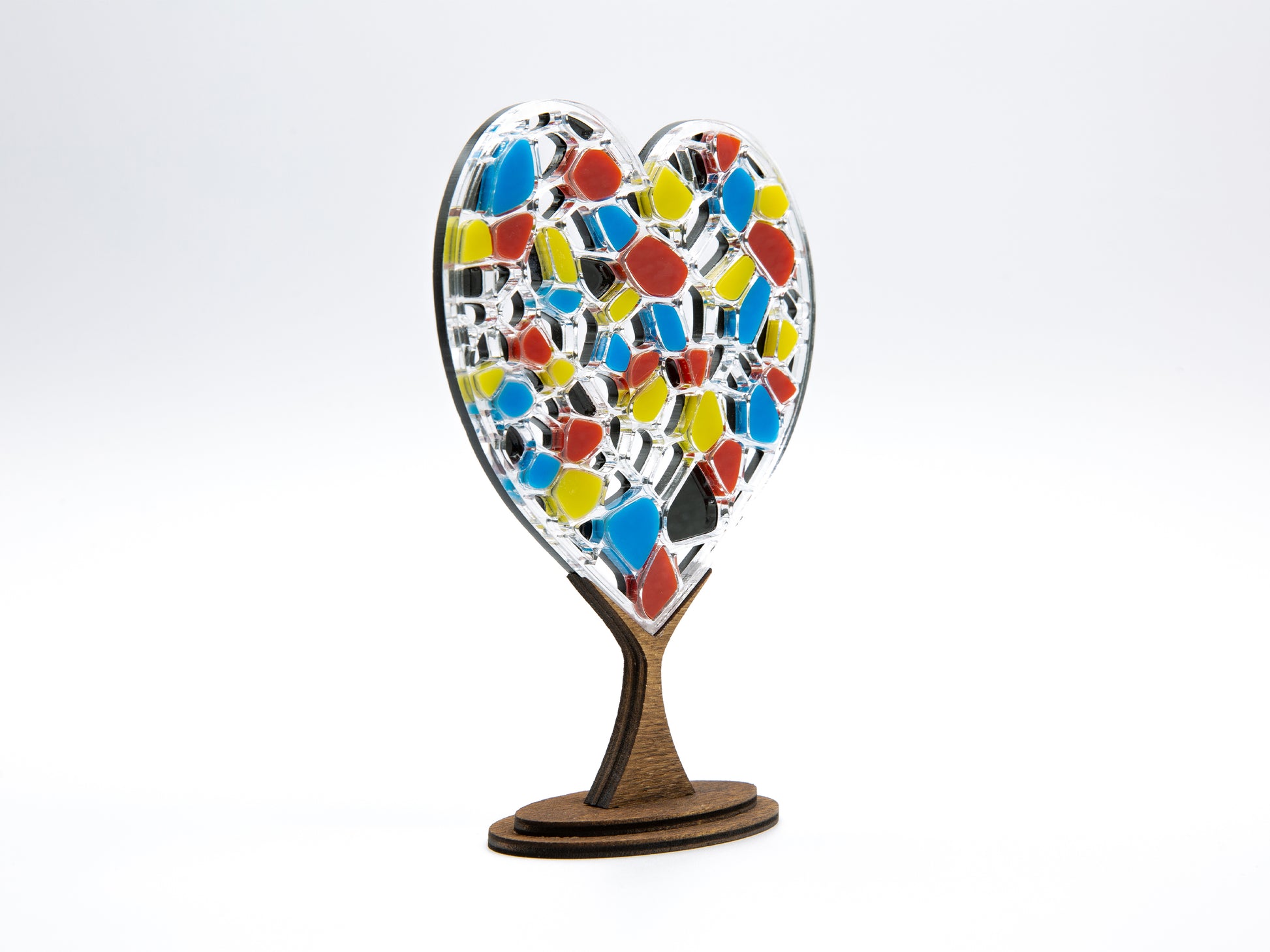 This wood and acrylic heart fuses the emotion and expression of love with the rigor and simplicity of Mondrian's abstract art. It represents a unique interpretation of the symbolism of the heart through the prism of the artist's distinctive style, inviting reflection on the balance between love and geometric form.