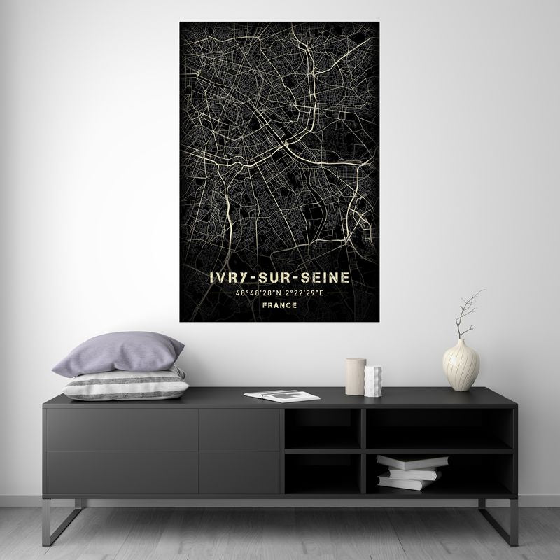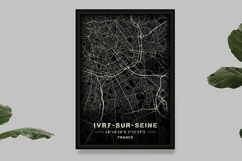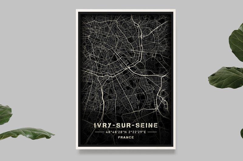 Ivry-sur-Seine - Black and White Map