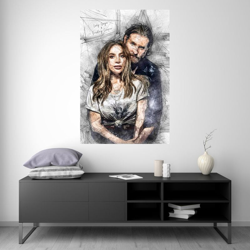 Come and discover this magnificent illustration of Lady Gaga and Bradley Cooper, two of the biggest stars in the world of music and cinema. This image is perfect for fans of these two icons to proudly display in their home or office.
