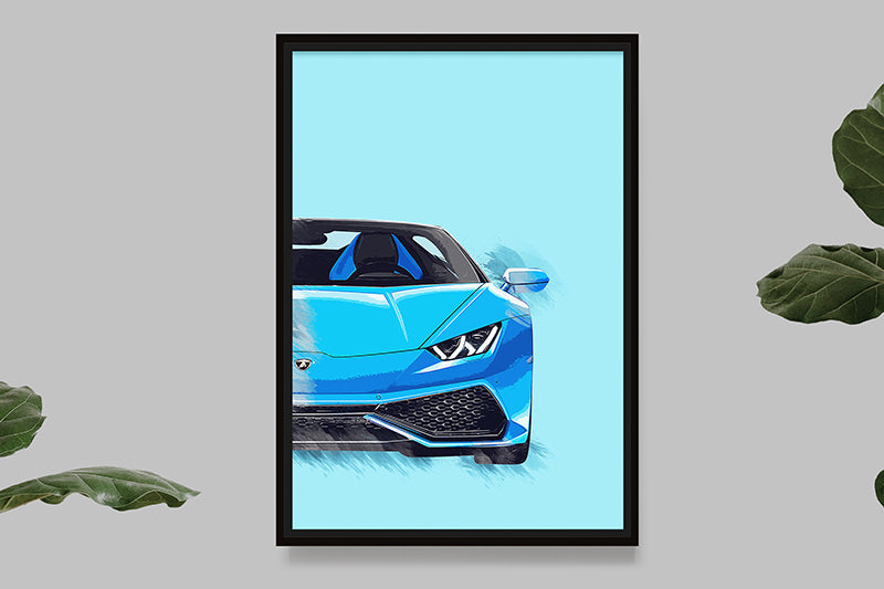 This illustration of a Lamborghini Huracan is the perfect addition to your luxury car collection. This high quality artwork showcases every detail of this iconic sports car.
