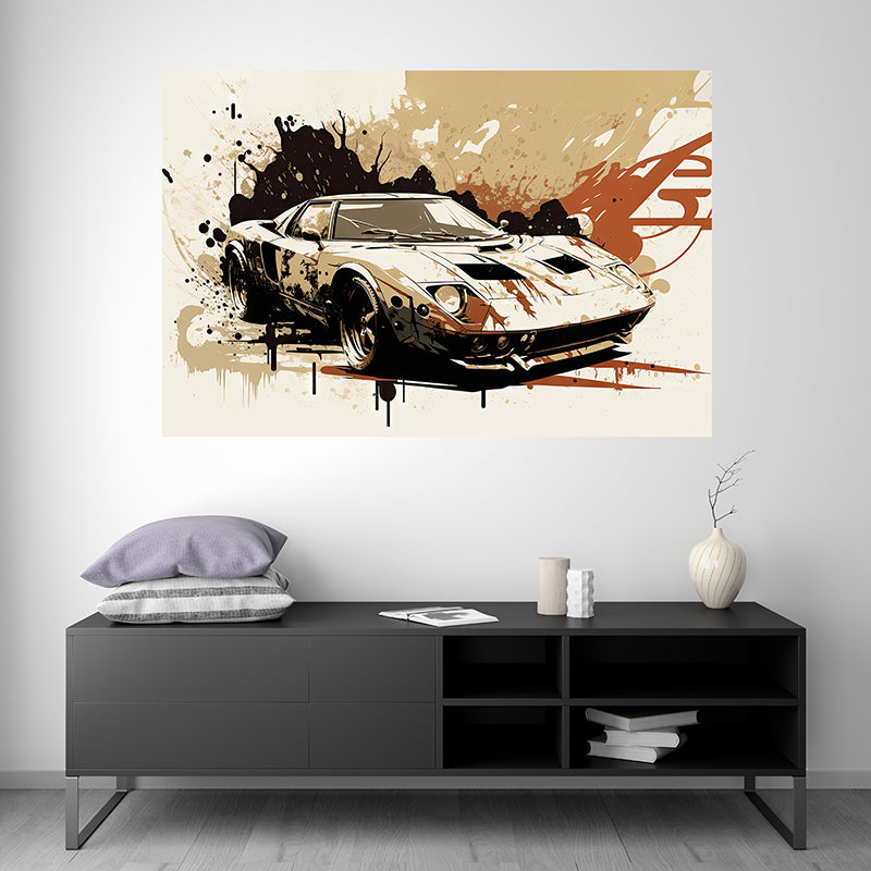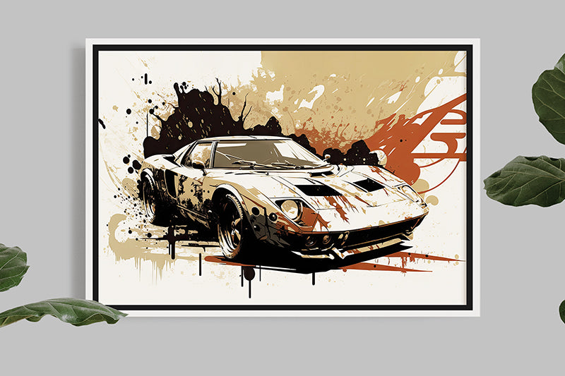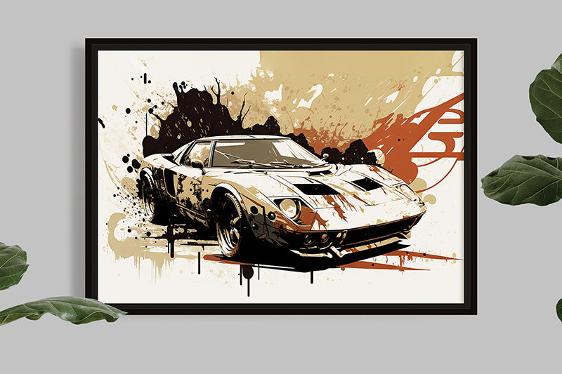 This illustration of the Lamborghini Miura is a true masterpiece of automotive art, showcasing the iconic and revolutionary design of this legendary sports car through the splash painting technique.