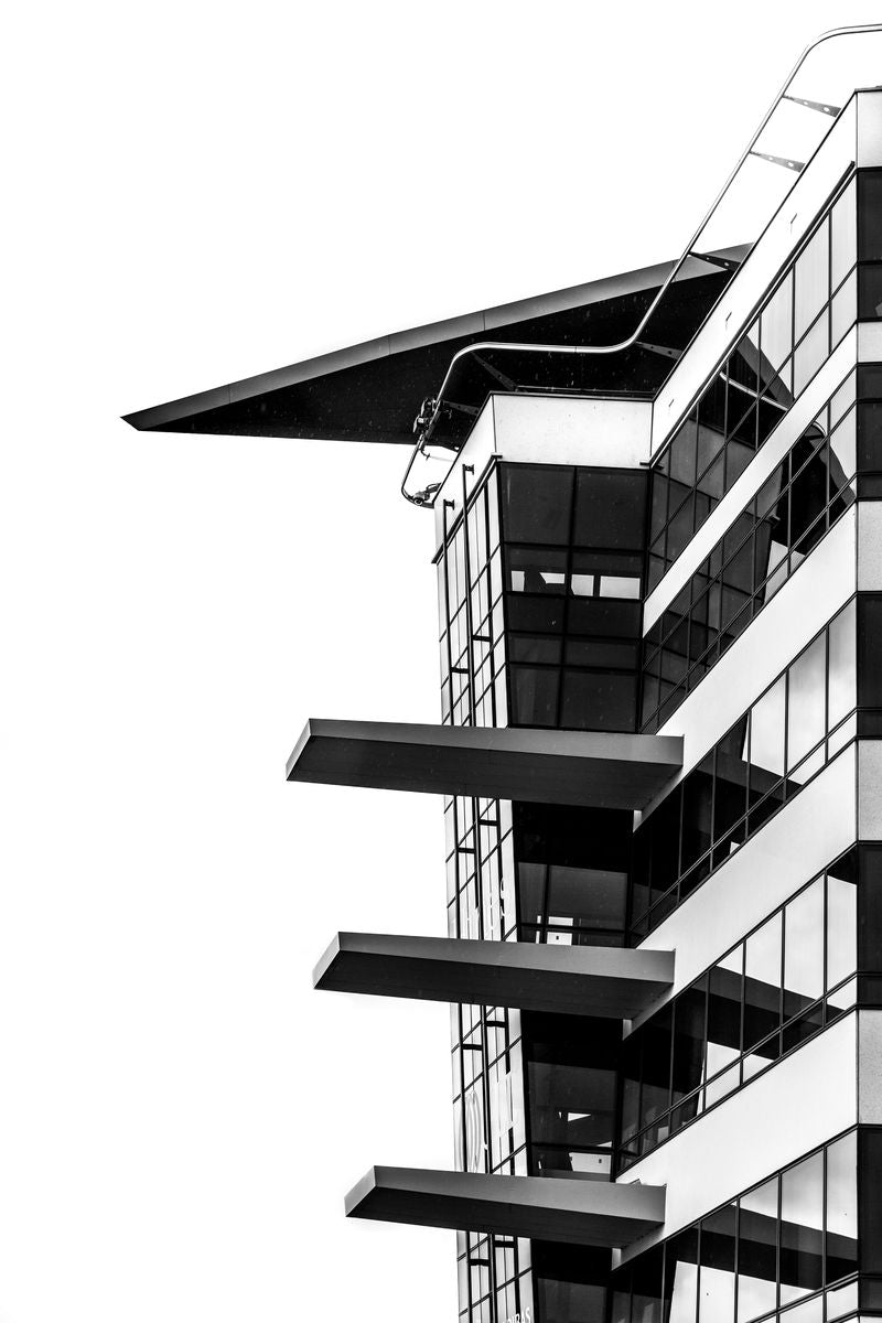 This black and white building photo is a true work of art. It captures the essence of the structure with incredible precision, highlighting architectural details and elegant lines.