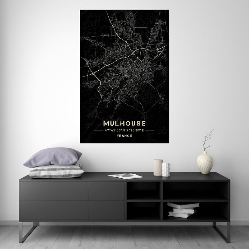 The colors may vary slightly from the printed photo due to the colorimetry of your screen. It 's not exactly black and white, major roads and names are in light yellow.