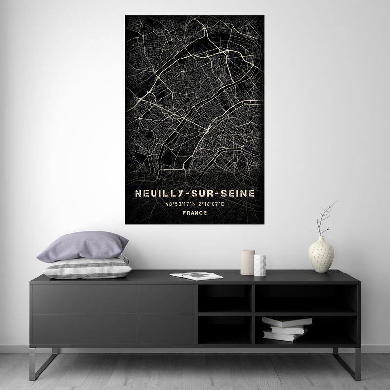 The colors may vary slightly from the printed photo due to the colorimetry of your screen. It 's not exactly black and white, major roads and names are in light yellow.