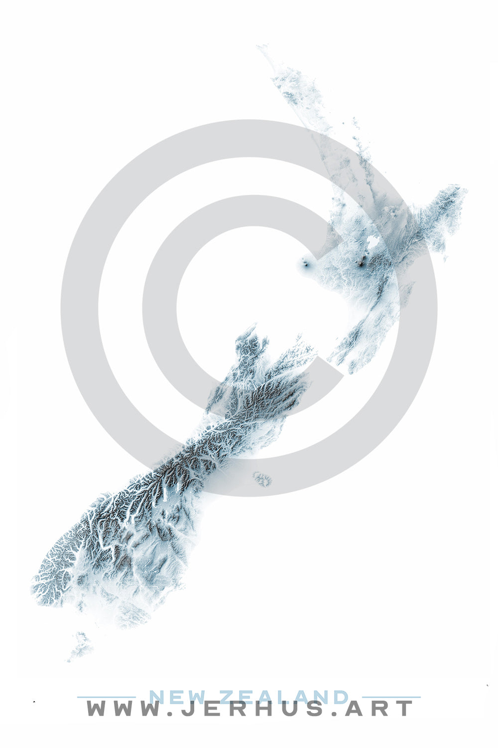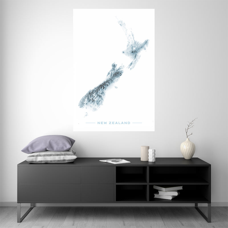 Don't miss this opportunity to own a unique and stylish illustration of New Zealand. Add this blue relief map to your collection today!