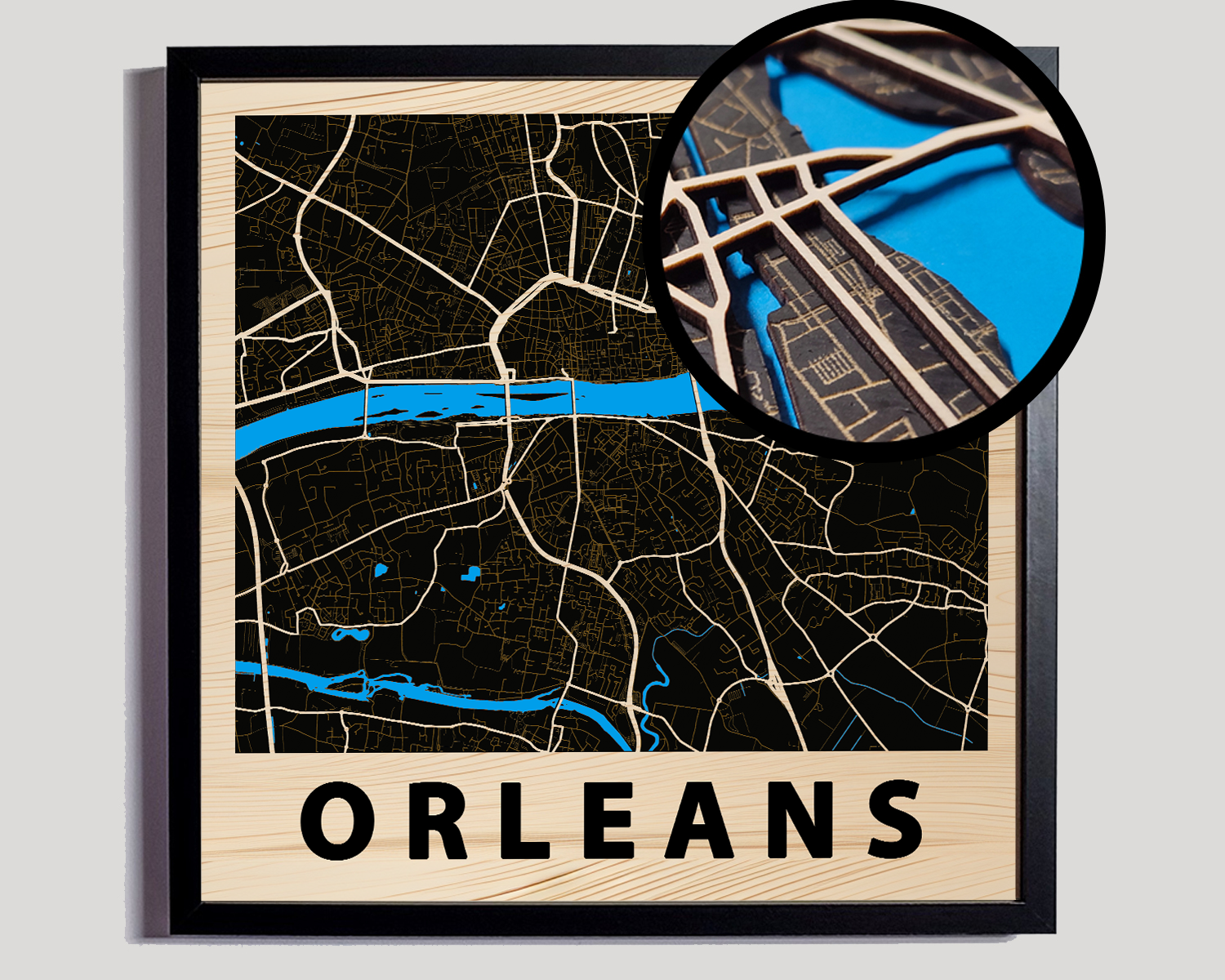 Immerse yourself in the elegance of an exceptional decoration with this original gift entirely designed in wood, handcrafted in France for an inimitable artisanal touch. Let yourself be seduced by this superb relief representation of the city of Orléans.