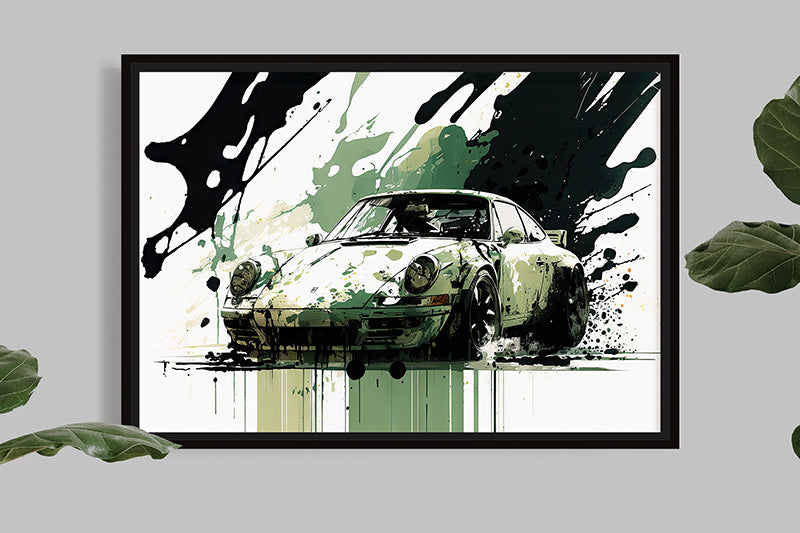 Don't miss this opportunity to own a unique and stunning illustration of the Porsche 911 in splash painting. You won't be disappointed with this fusion of art and automotive excellence, celebrating the captivating beauty of one of the most iconic cars in Porsche and automotive history.