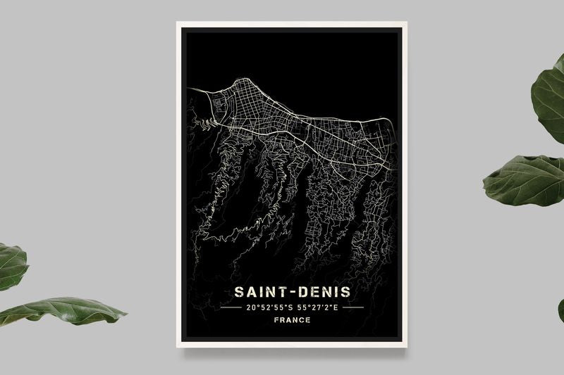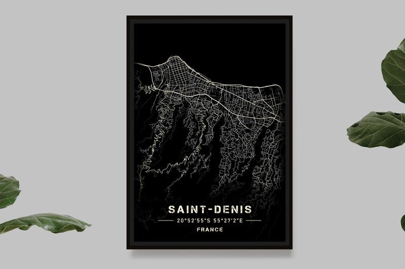 Saint-Denis - Reunion Island - Black and White Map