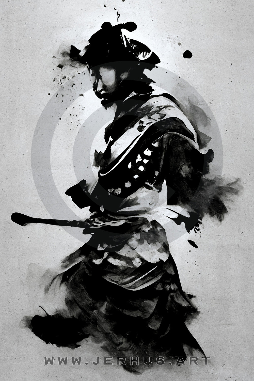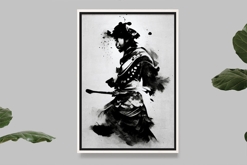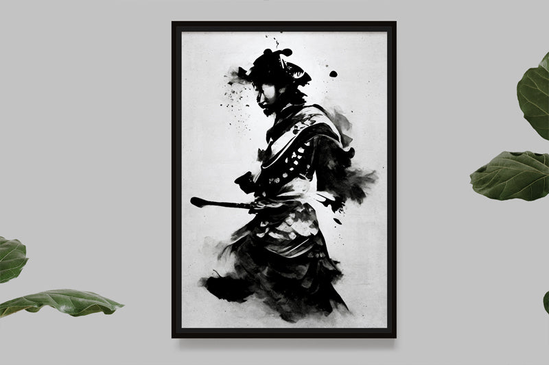 This unique and exceptional illustration transports you to the world of Japanese samurai. The splash paint style gives the image a dynamic and energetic effect, while the choice of black and white adds a touch of sophistication and timelessness. The samurai is represented in all his power and grace, ready to face any challenge that comes his way. This artwork will make a stylish and quirky addition to any wall, and makes a perfect gift for all lovers of Japanese art and history. Don't miss this opportunity to own a unique and unforgettable piece.