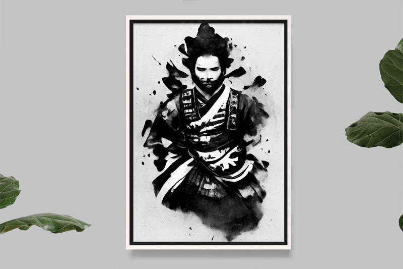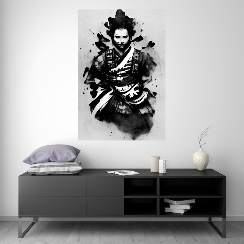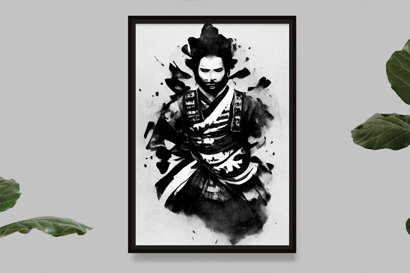 This unique and exceptional illustration transports you to the world of Japanese samurai. The splash paint style gives the image a dynamic and energetic effect, while the choice of black and white adds a touch of sophistication and timelessness. The samurai is represented in all his power and grace, ready to face any challenge that comes his way. This artwork will make a stylish and quirky addition to any wall, and makes a perfect gift for all lovers of Japanese art and history. Don't miss this opportunity to own a unique and unforgettable piece.