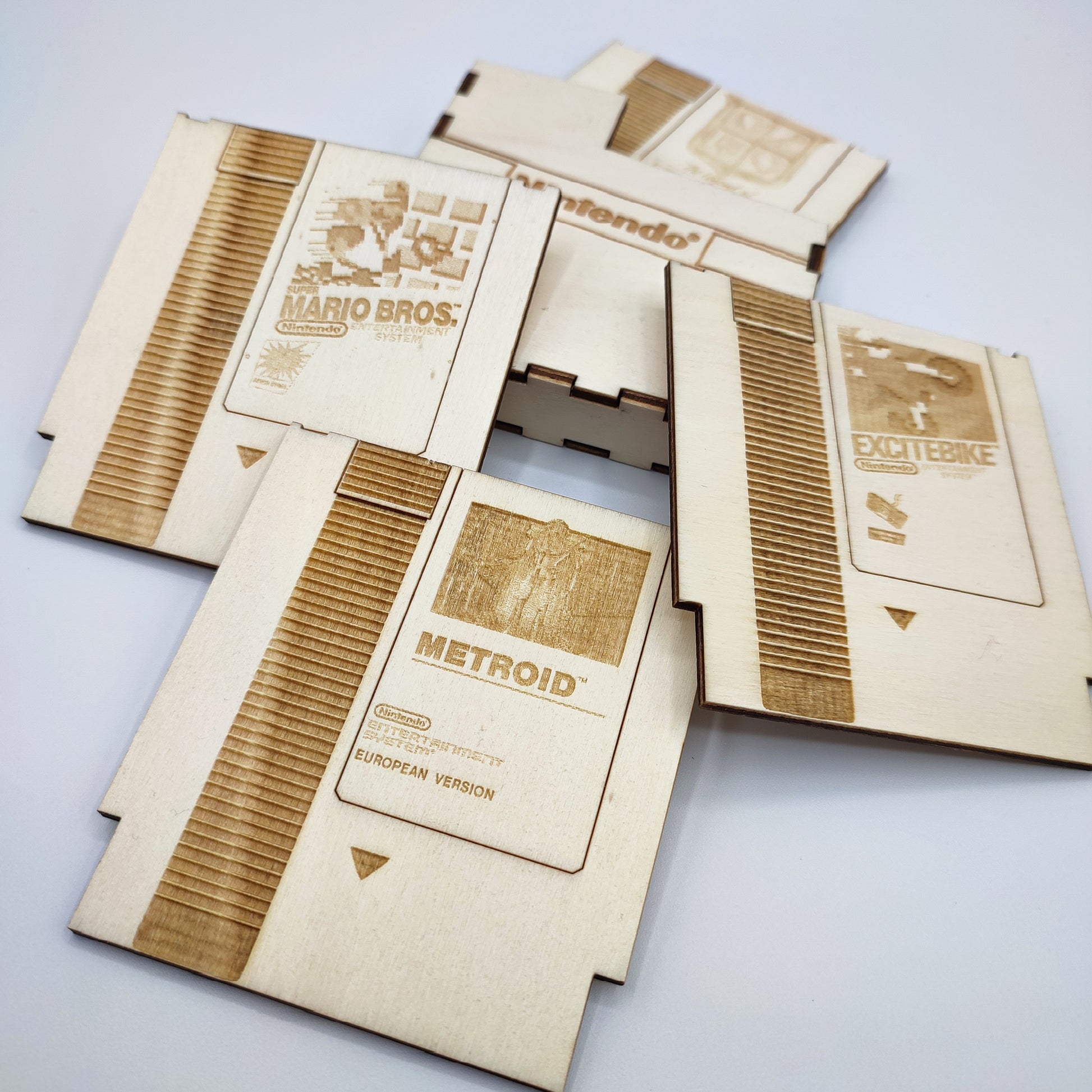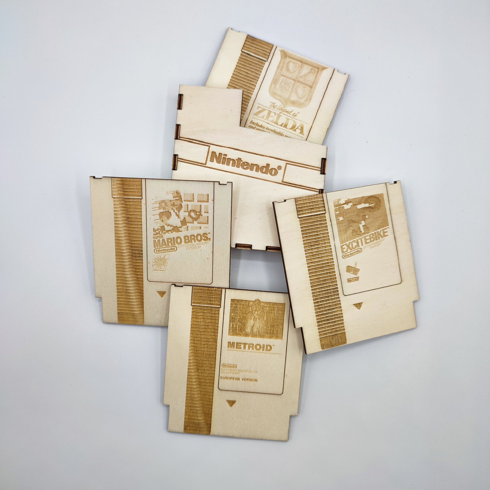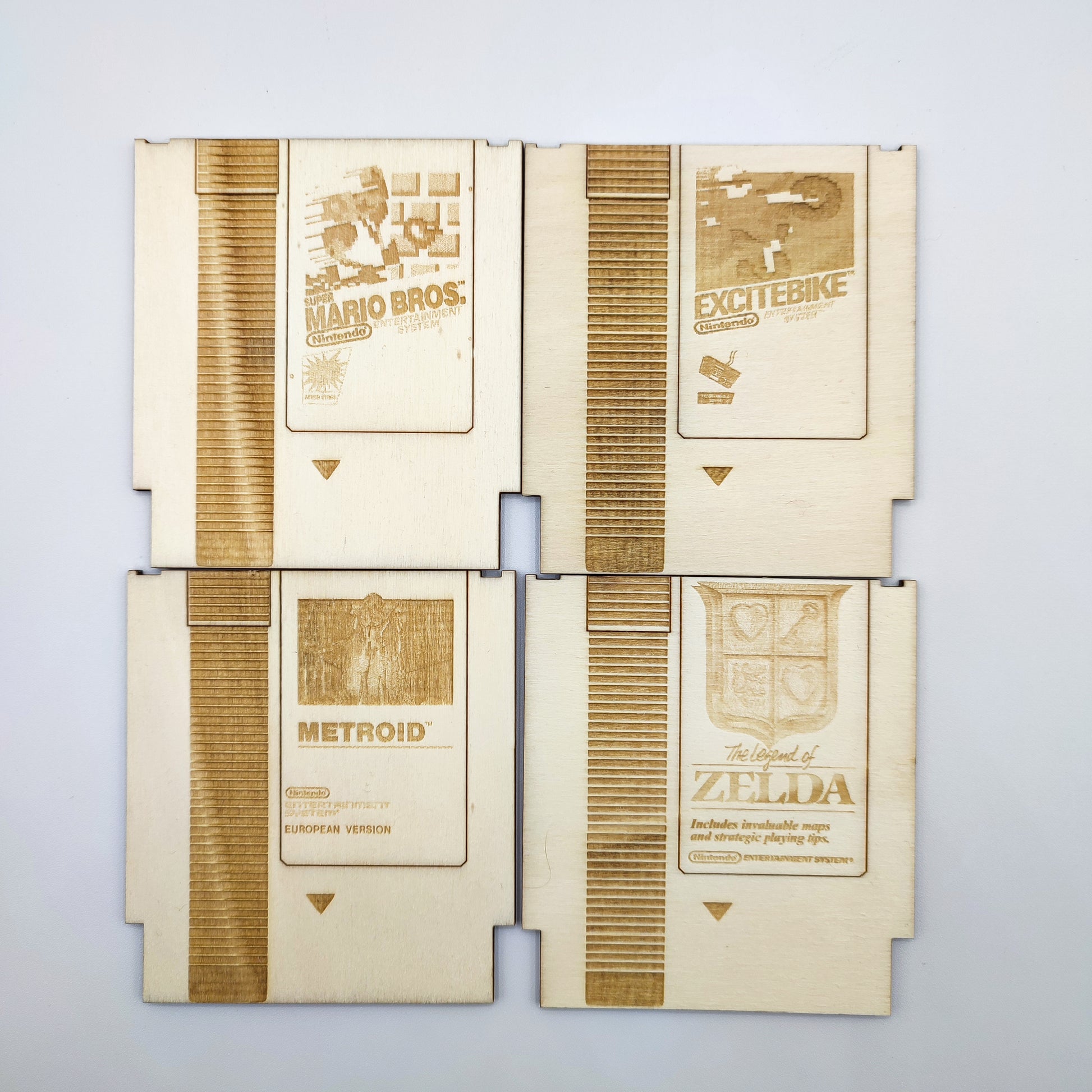 Find in a version of the most original, the most famous and emblematic games of the Nintendo Nes in the form of coasters with the box engraved. This set of 4 coasters takes the shape of the old game cartridges.