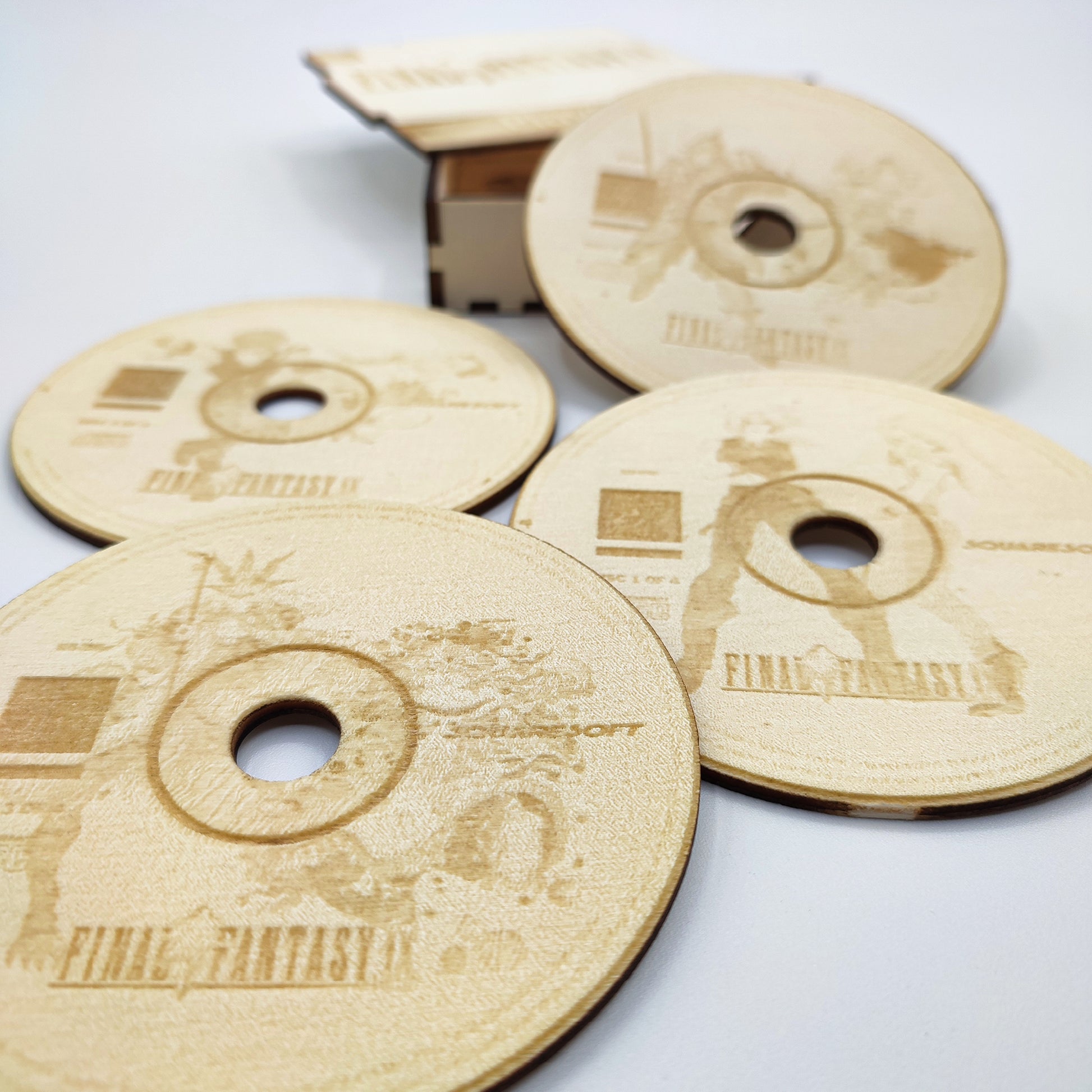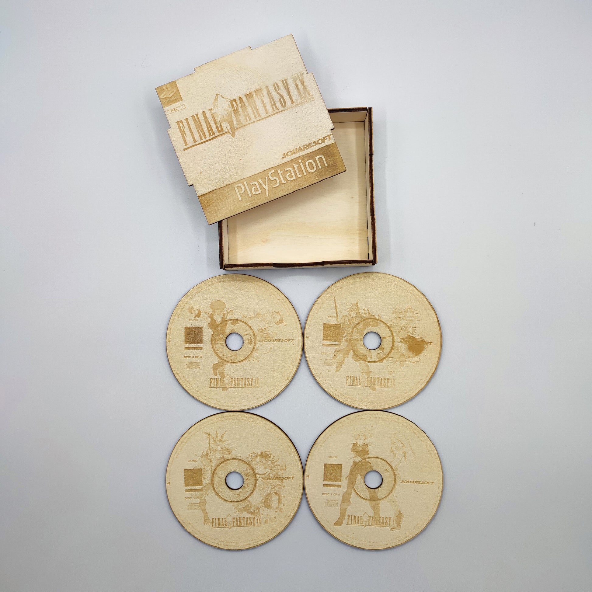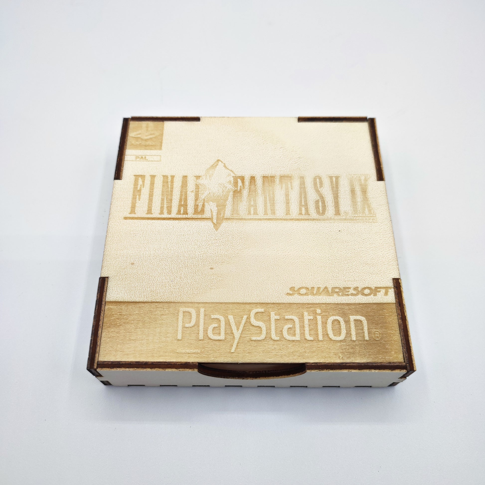 Find in a most original version, the famous and emblematic CDs of Final Fantasy IX with the engraved game box. Taken from the Playstation 1 version of FF9, this set of 4 coasters and its box are engraved and cut with the greatest care.