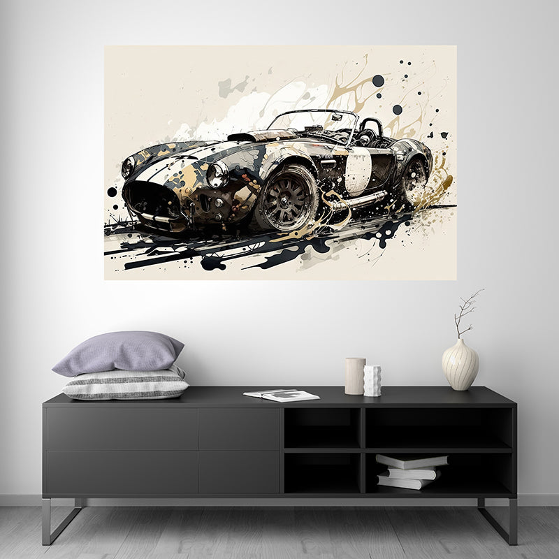 This illustration of the Shelby 427 Cobra is a true masterpiece of automotive art, showcasing the powerful and iconic design of this legendary sports car through the splash painting technique.