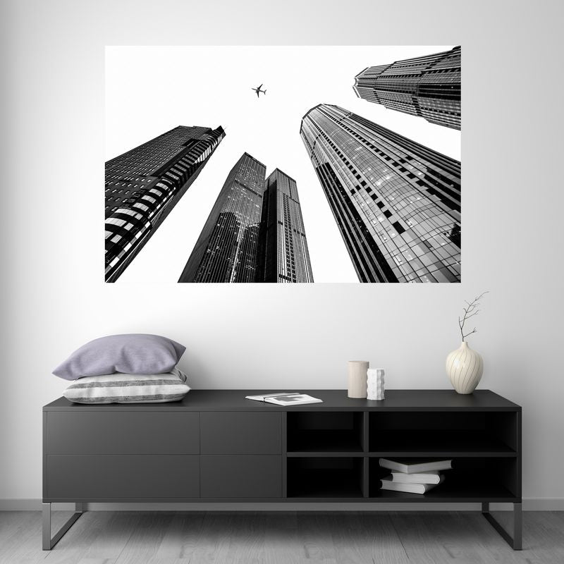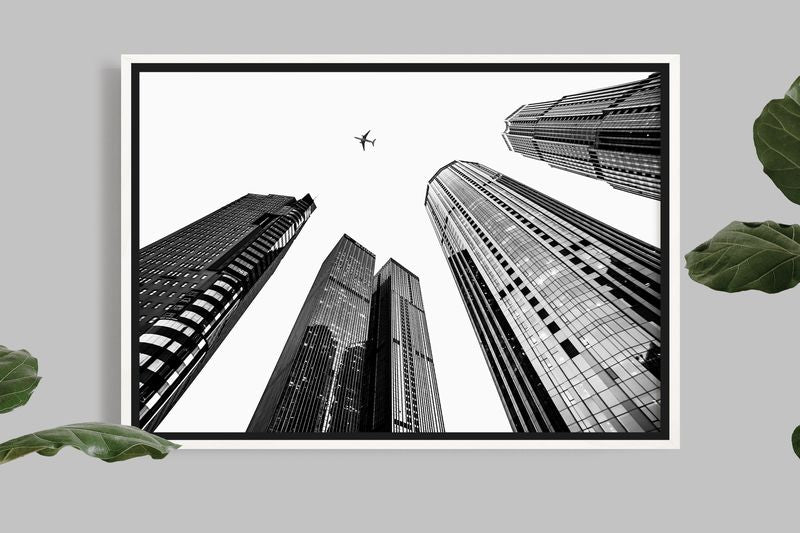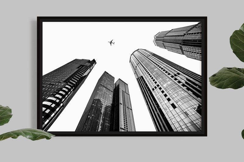 Light and shadow play skilfully on the surfaces of the buildings, creating a dramatic and mysterious atmosphere. This photograph is a stylish addition to any urban or interior design photo collection. Add this piece of art to your wall and let it inspire your imagination.