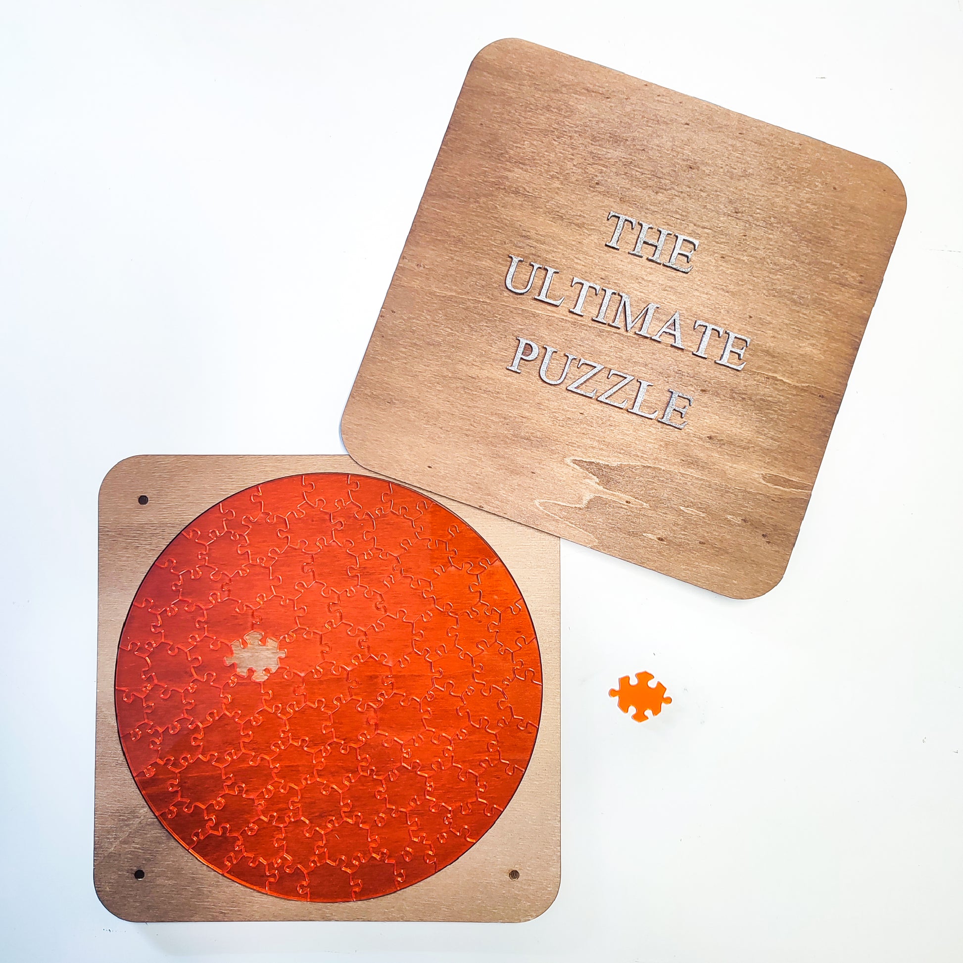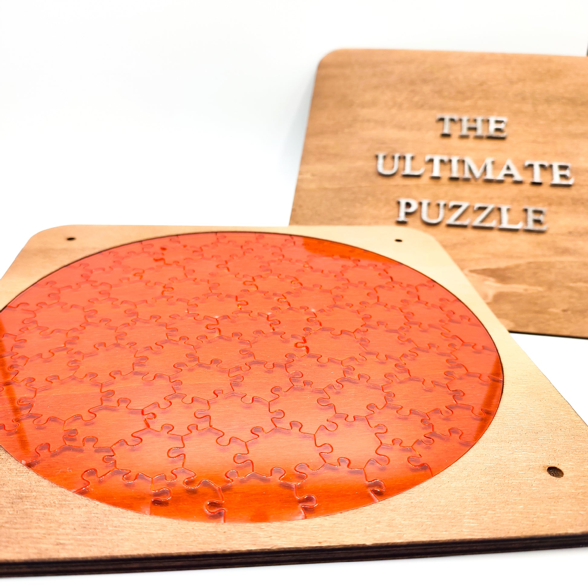 This puzzle is made up of several transparent acrylic pieces. Each piece has a unique shape, which makes the puzzle even harder to solve.