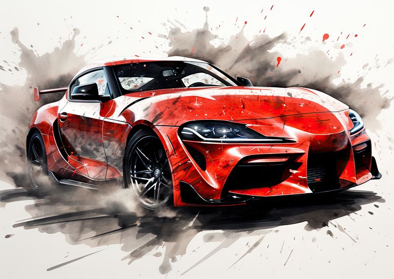 This illustration of the Toyota Supra GR is a true work of automotive art, showcasing the iconic and dynamic design of this legendary car through the captivating technique of splash painting.