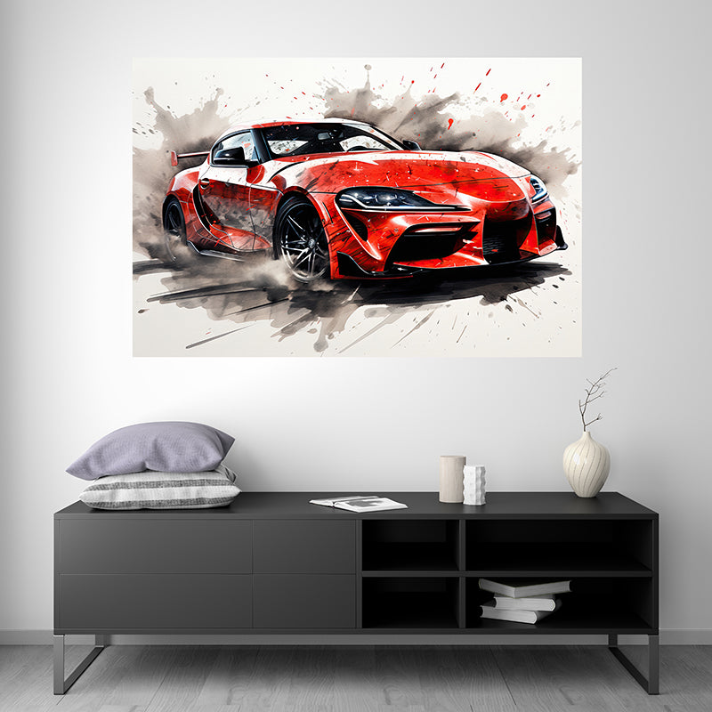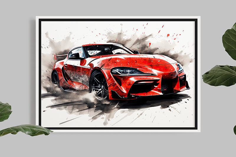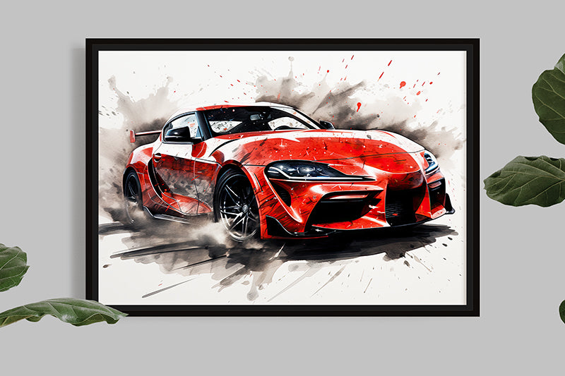 Don't miss this opportunity to own a unique and stunning illustration of the Toyota Supra GR in splash painting. You will be mesmerized by this fusion of artistry and automotive excellence, celebrating the timeless beauty of one of the most iconic cars in modern automotive history.