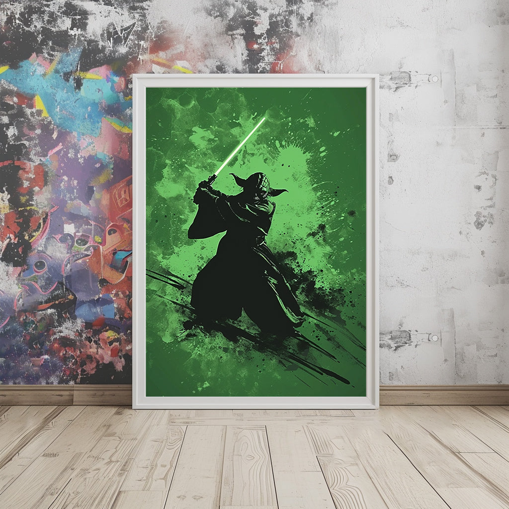 Printed with exceptional quality on premium paper, this wall poster is not only a style statement, but also a collector's item for devoted Star Wars fans. Yoda's sharp silhouette stands out elegantly against a green background, adding a modern, refined touch to any space.