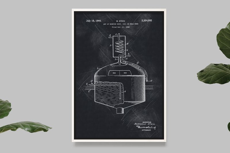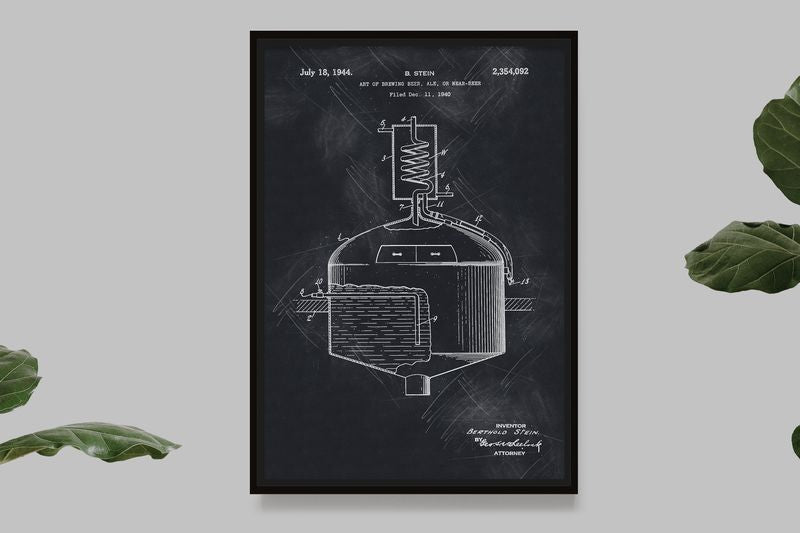 Voici une illustration épique d'une cuve de brassage de bière en craie blanche sur fond noir qui ressemble à un blueprint (plan d'architecte). Cette image est parfaite pour les amateurs de bière ou pour ceux qui cherchent à ajouter une touche industrielle à leur décoration de maison. La cuve de brassage est détaillée avec précision, mettant en valeur chaque tuyau et valve. Le fond noir donne une sensation de modernité et de professionnalisme, tandis que la craie blanche ajoute une touche artistique. Cette illustration sera un ajout unique et mémorable à n'importe quel mur. Si vous avez une passion pour la bière ou que vous cherchez à ajouter une touche d'originalité à votre décoration, ne manquez pas cette opportunité de mettre la main sur cette cuve de brassage de bière en craie blanche sur fond noir.