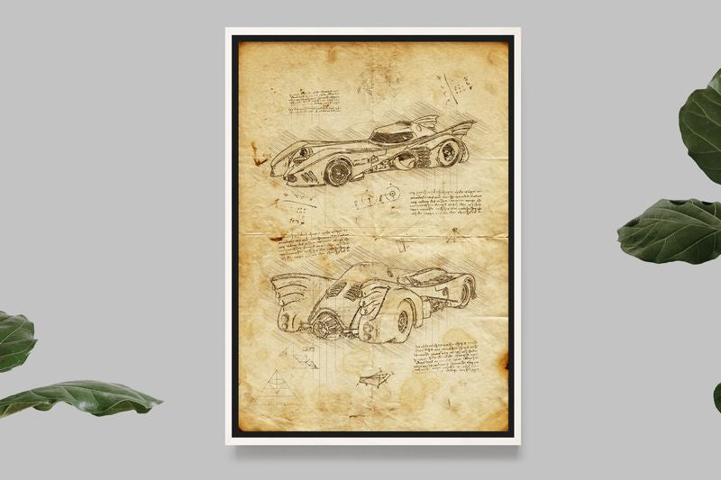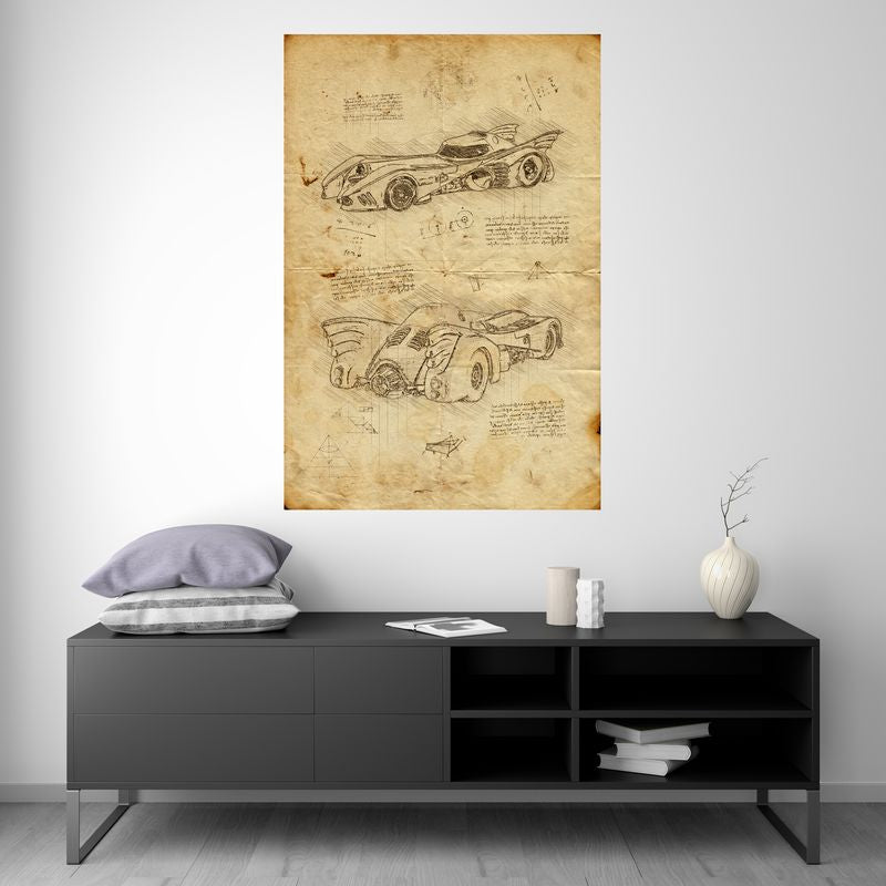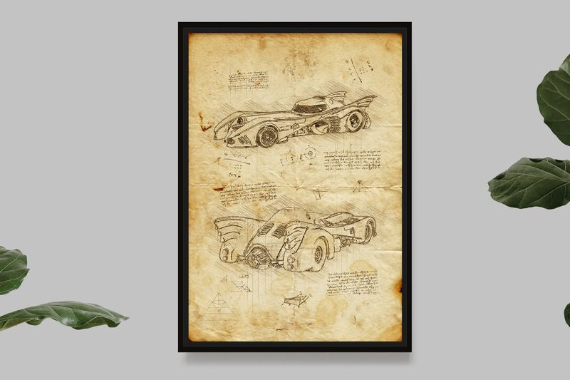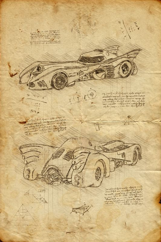 Cette illustration de la célèbre Batmobile, dessinée dans le style de Leonardo Da Vinci, est une œuvre d'art exceptionnelle qui captivera les yeux de tous les fans de Batman. Le style de Da Vinci, connu pour sa précision et sa beauté, est parfaitement adapté à la Batmobile, symbole de puissance et de technologie avancée.