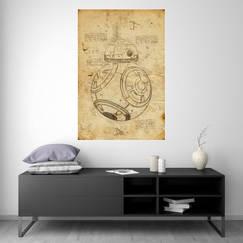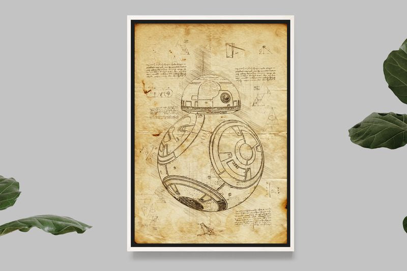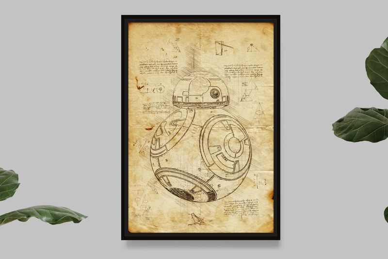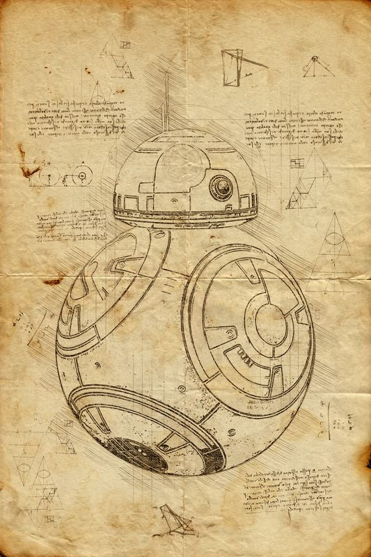Vous êtes un fan inconditionnel de Star Wars et vous cherchez une illustration originale et unique de votre personnage préféré ? Ne cherchez plus, vous l'avez trouvé ! Cette illustration du droïde BB-8, l'un des robots les plus mignons et attachants de la saga, est réalisée dans un style inspiré de Leonardo da Vinci, le célèbre artiste et scientifique italien du Moyen Âge.