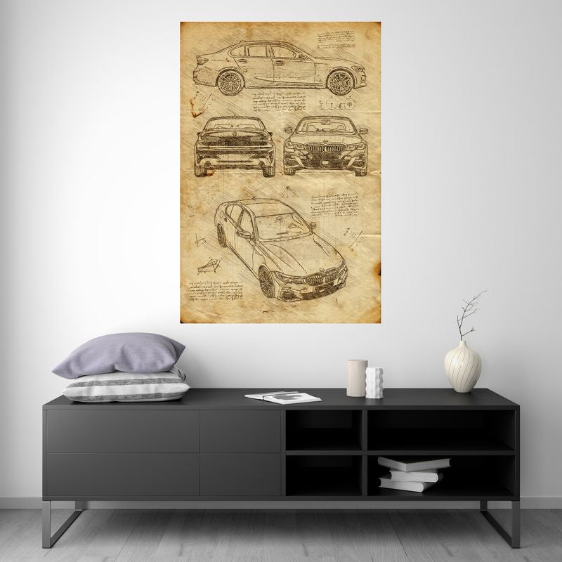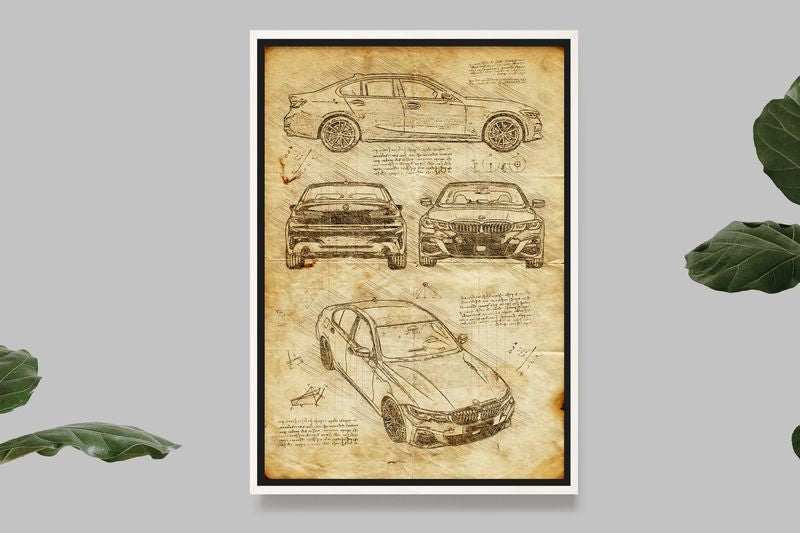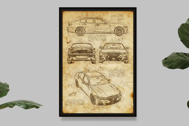 Cette illustration de la célèbre marque de voitures Bmw, dessinée dans le style de Leonardo Da Vinci, est une œuvre d'art exceptionnelle qui captivera les yeux de tous les fans de l'automobile. Le style de Da Vinci, connu pour sa précision et sa beauté, est parfaitement adapté à la BMW 330i G20, symbole de performance et de style.