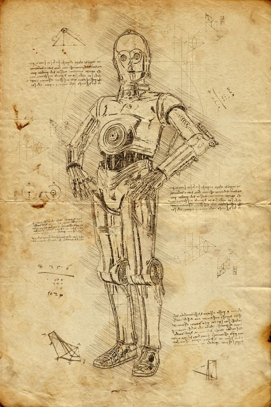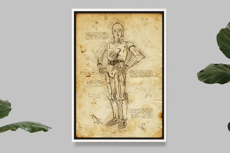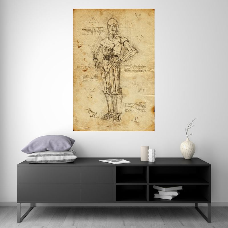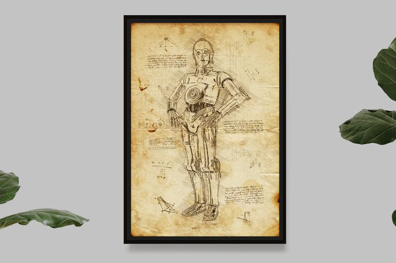 Vous êtes un fan inconditionnel de Star Wars et vous cherchez une illustration originale et unique de votre personnage préféré ? Ne cherchez plus, vous l'avez trouvé ! Cette illustration du droïde C-3PO, l'un des personnages les plus emblématiques de la saga, est réalisée dans un style inspiré de Leonardo da Vinci, le célèbre artiste et scientifique italien du Moyen Âge.