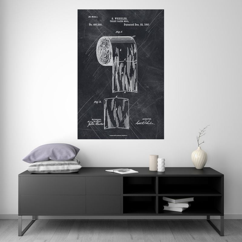 Ajoutez une touche d'élégance à vos toilettes avec cette magnifique illustration d'un dérouleur de papier WC en craie blanche sur fond noir. Le style blueprint apporte une touche vintage et industrielle à cette pièce maîtresse. Cette illustration sera parfaite pour habiller un mur vide ou pour compléter votre décoration.