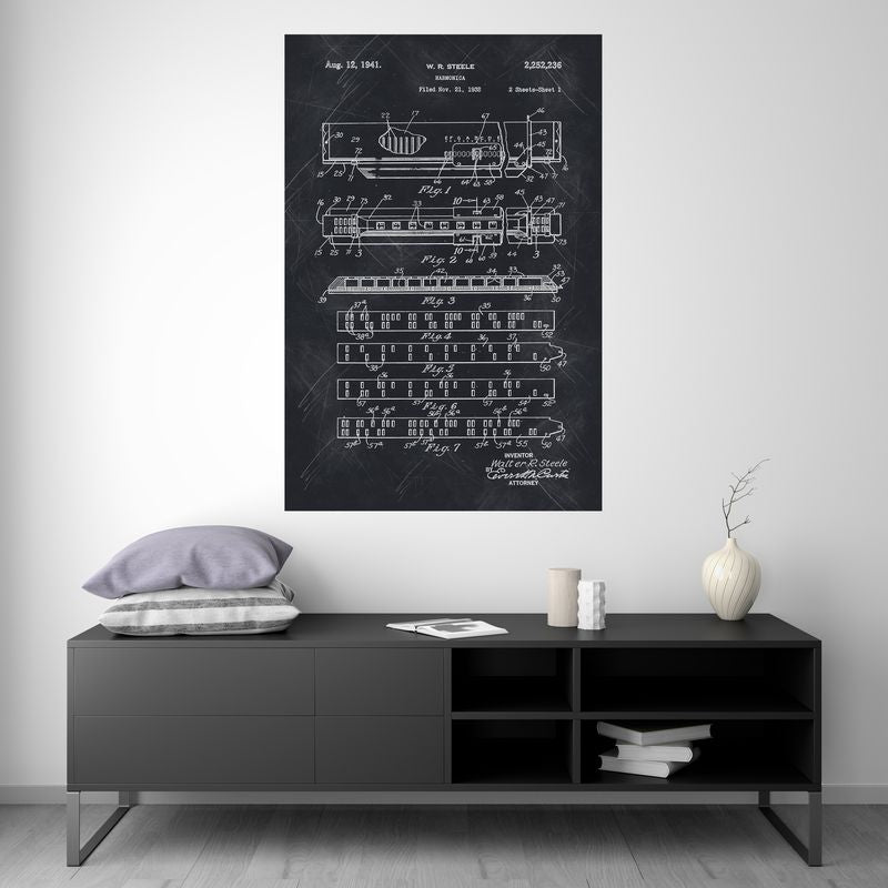 Voici une illustration unique et élégante d'un harmonica en craie blanche sur fond noir en style blueprint. Cette image est parfaite pour ajouter une touche artistique à n'importe quel espace. Le contraste de la craie blanche sur le fond noir crée un effet visuel captivant qui attire l'attention. Le style blueprint, inspiré des plans de construction, ajoute une touche industrielle à cette pièce. Que vous soyez un fan d'harmonica ou simplement appréciiez l'art, cette illustration sera une addition parfaite à votre collection. Alors ne manquez pas cette opportunité d'ajouter cette pièce unique à votre décor !